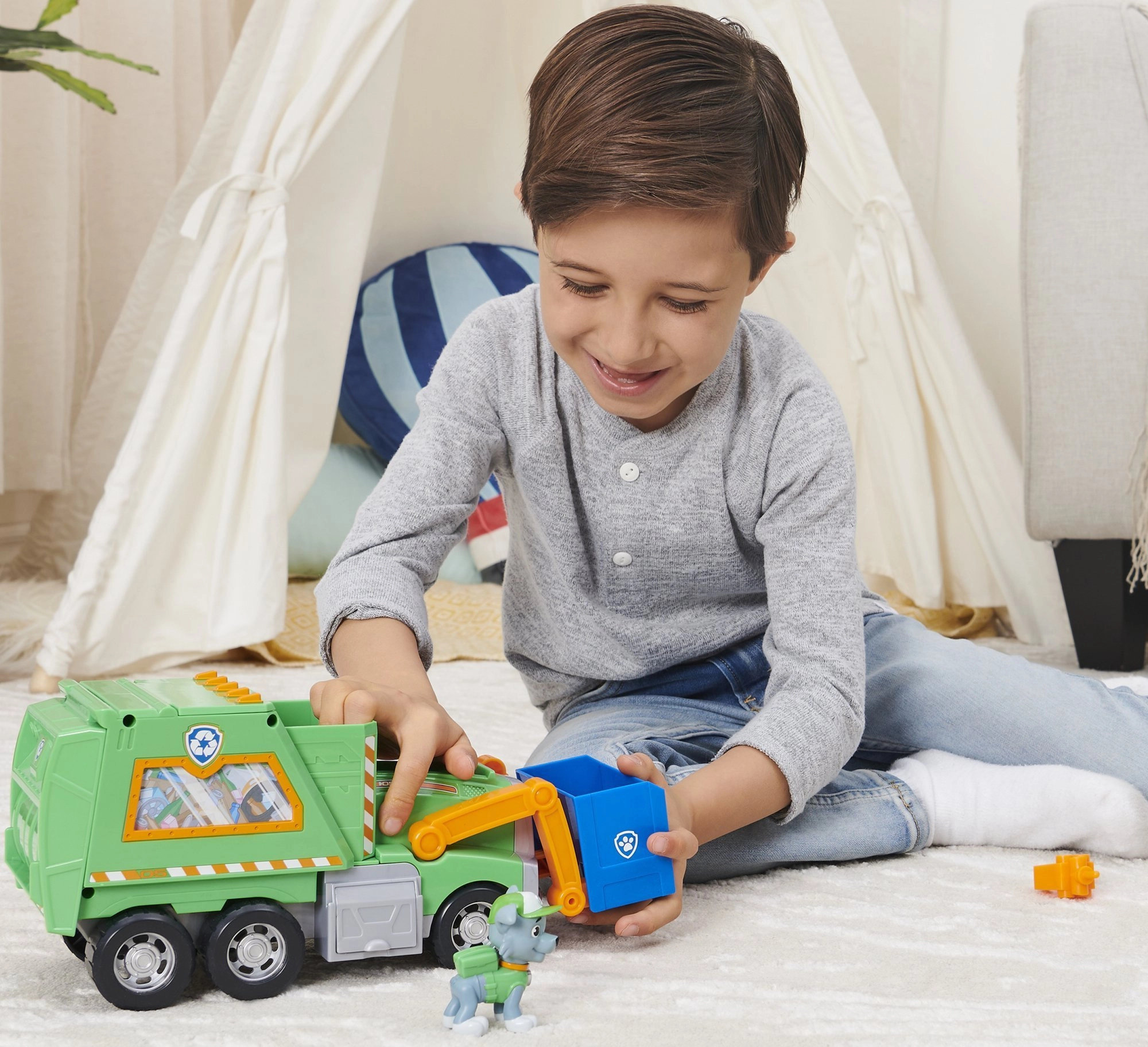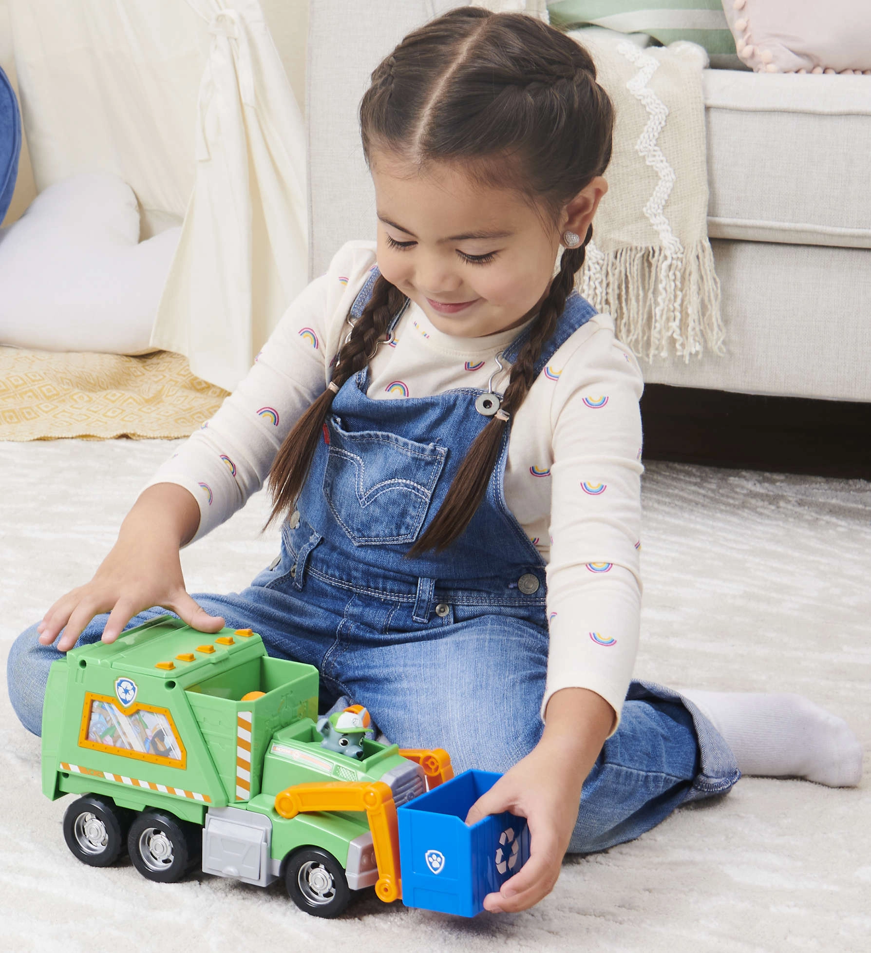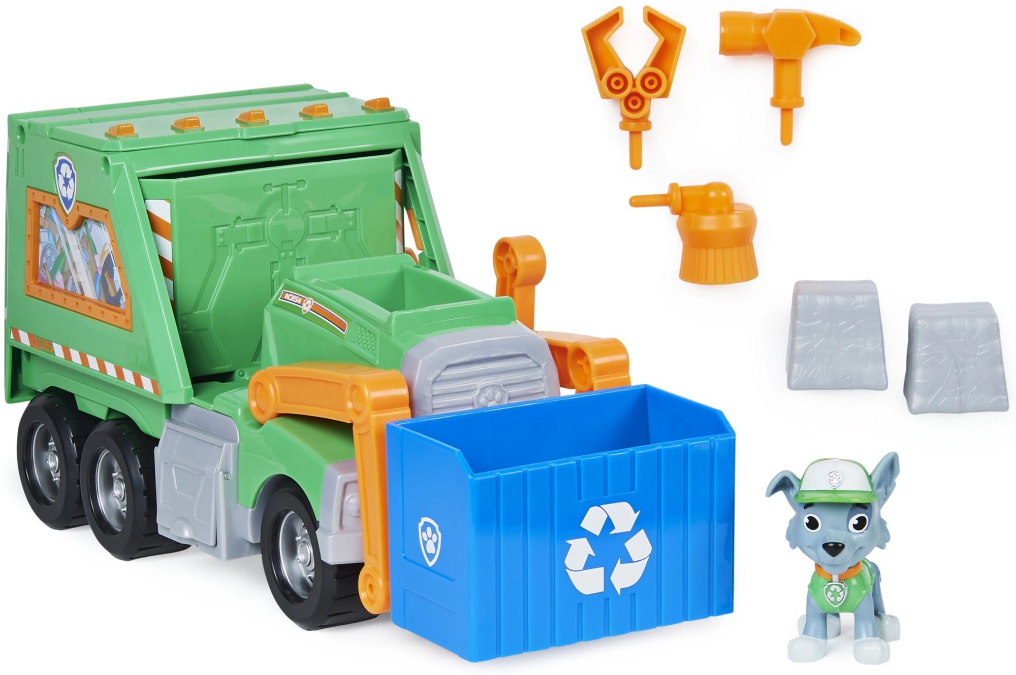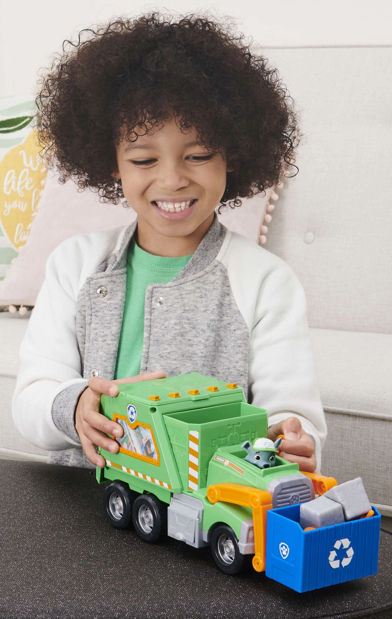 Leiskitės į gelbėjimo misiją dėl švaresnio miesto su Rokiu ir jo žaliu perdirbimo sunkvežimiu. Vaikai gali kelti mėlyną krepšį, krauti „šiukšles“ ir mokytis rūšiavimo. Autentiškos detalės iš serialo Paw Patrol skatina fantaziją ir siužetinį žaidimą.
