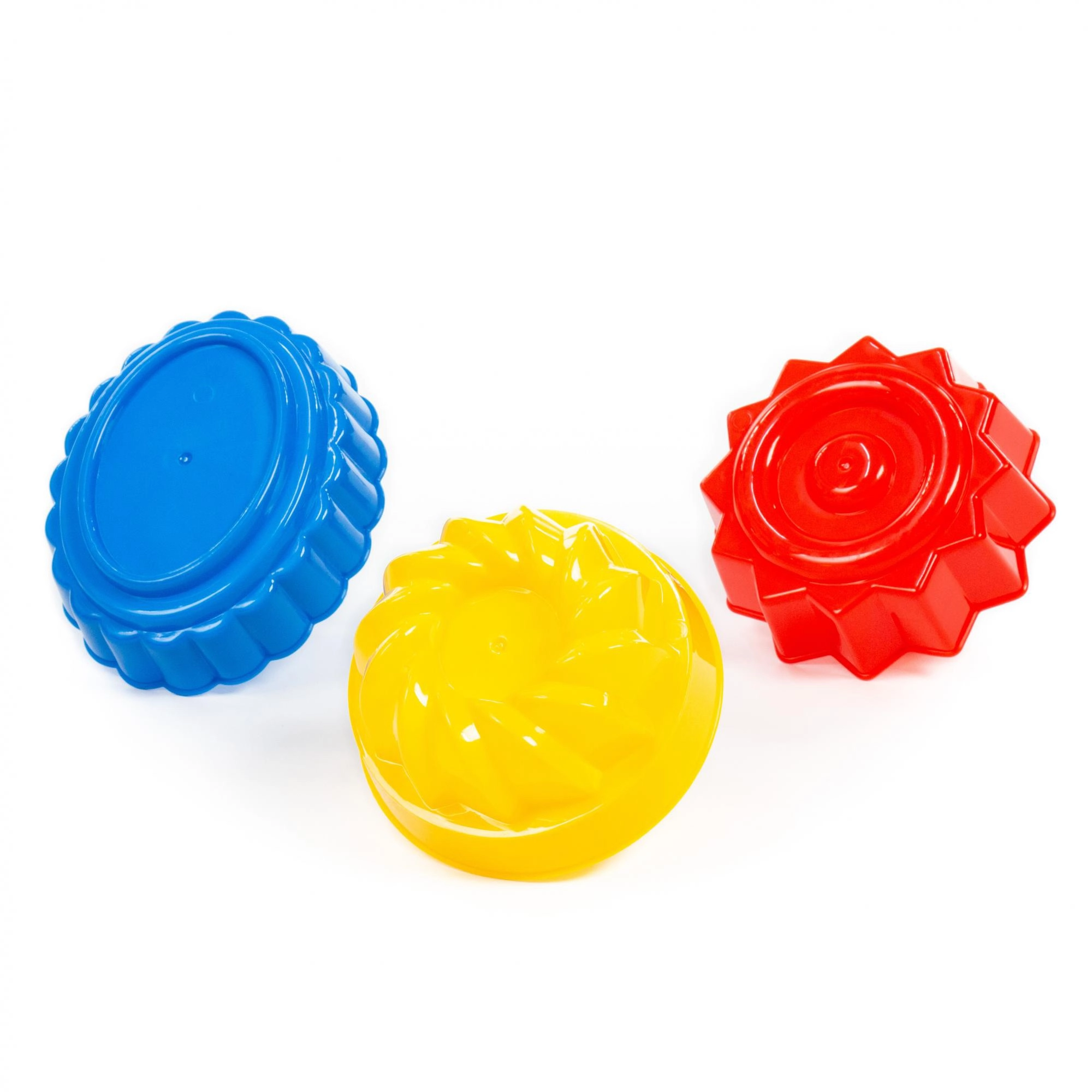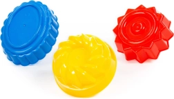 Trys skirtingos „bábovkės“ formos leidžia vaikams kurti įvairius ir dekoratyvius smėlio ar modeliavimo masės kūrinius.