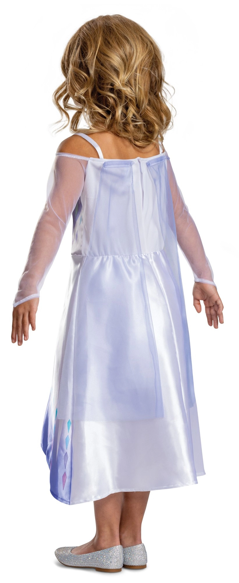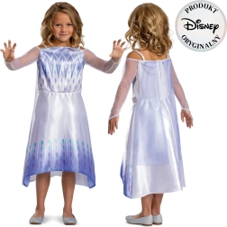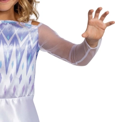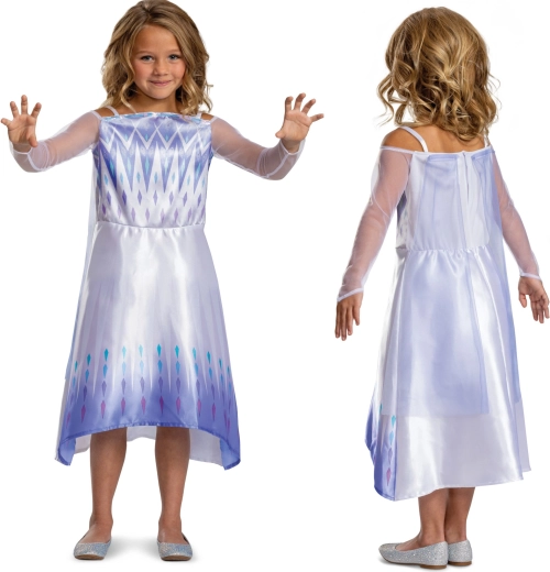 Paverskite kasdienius žaidimus ledo karalyste su kostiumu, įkvėptu herojės ELZOS iš filmo DISNEY FROZEN. Suknelė švelnių baltos, alyvinės ir sidabrinės atspalvių turi permatomas rankoves, margintą liemenę su „lediniais“ motyvais ir krintantį sijoną su tolygiu spalvų perėjimu bei smulkiais deimantiniais raštais.