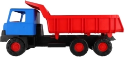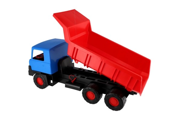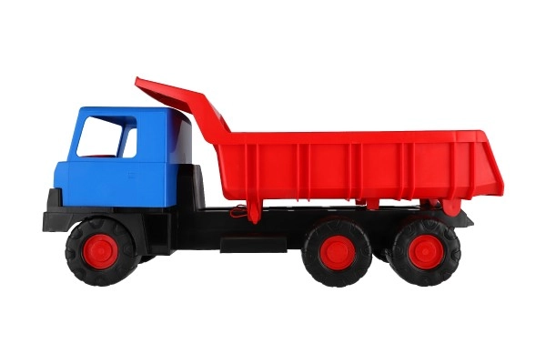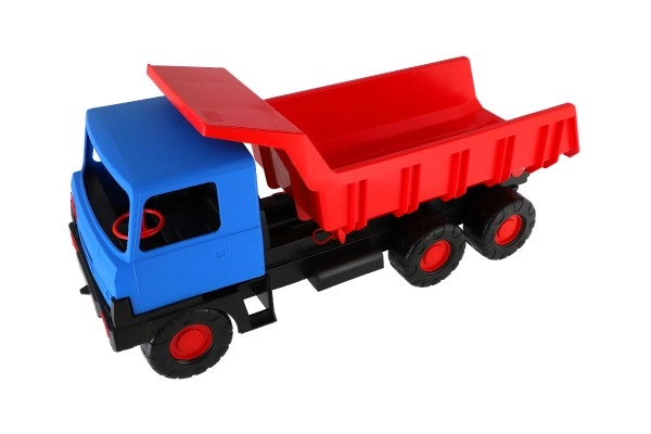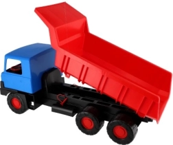 Tvirtas plastikinis sunkvežimis su mėlyna kabina ir raudona pakelia korba pradžiugins mažuosius statybininkus tiek namuose, tiek smėlio dėžėje. Dėl 75 cm ilgio, patvarių ratukų ir funkcinio pakėlimo jis lengvai perveža smėlį, akmenėlius ir žaislus. Lengva ir saugi konstrukcija skatina kūrybišką ir lauko žaidimą.