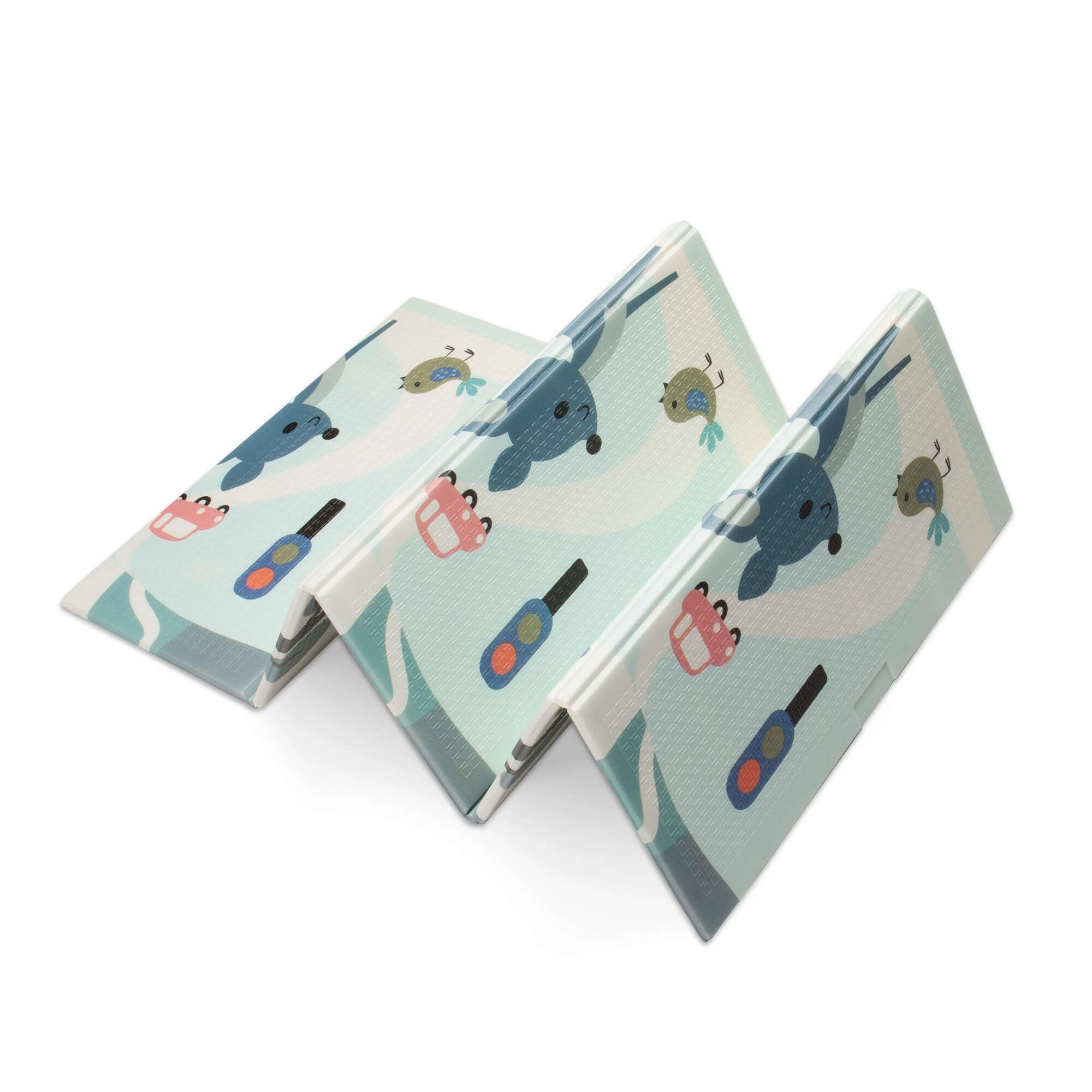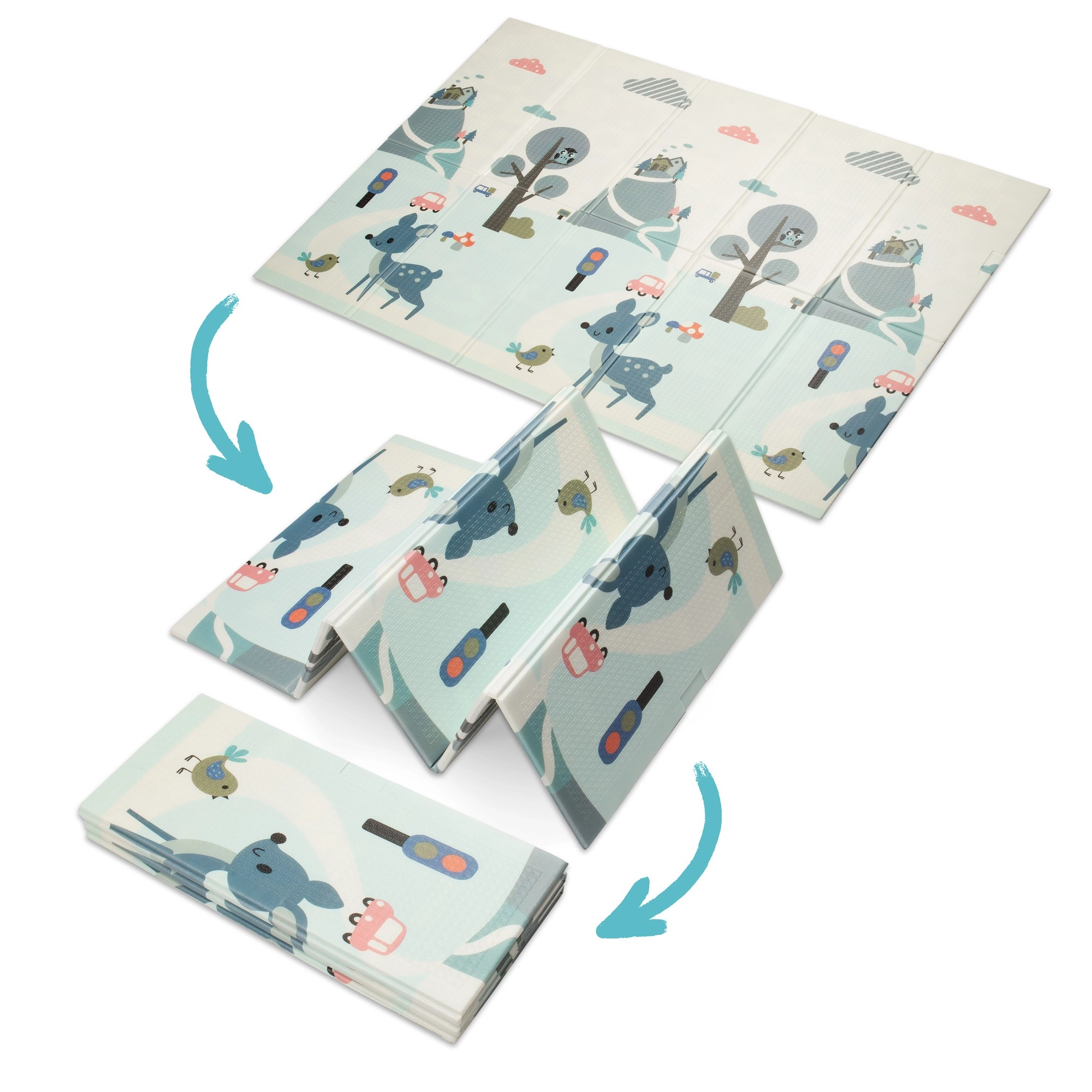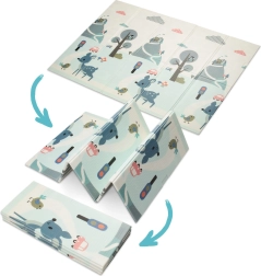 Kilimėlis sulankstomas akordeonu, todėl jį išskleisite ar sudėsite per kelias sekundes. Jis lengvas, atsparus vandeniui ir pakanka nuvalyti drėgna šluoste – puikus pasirinkimas ir alergiškiems, nes nekaupia dulkių ir dulkių erkučių. Komplekte – užsegamas krepšys su rankenomis patogiam nešiojimui į sodą, balkoną, pikniką ar keliones.