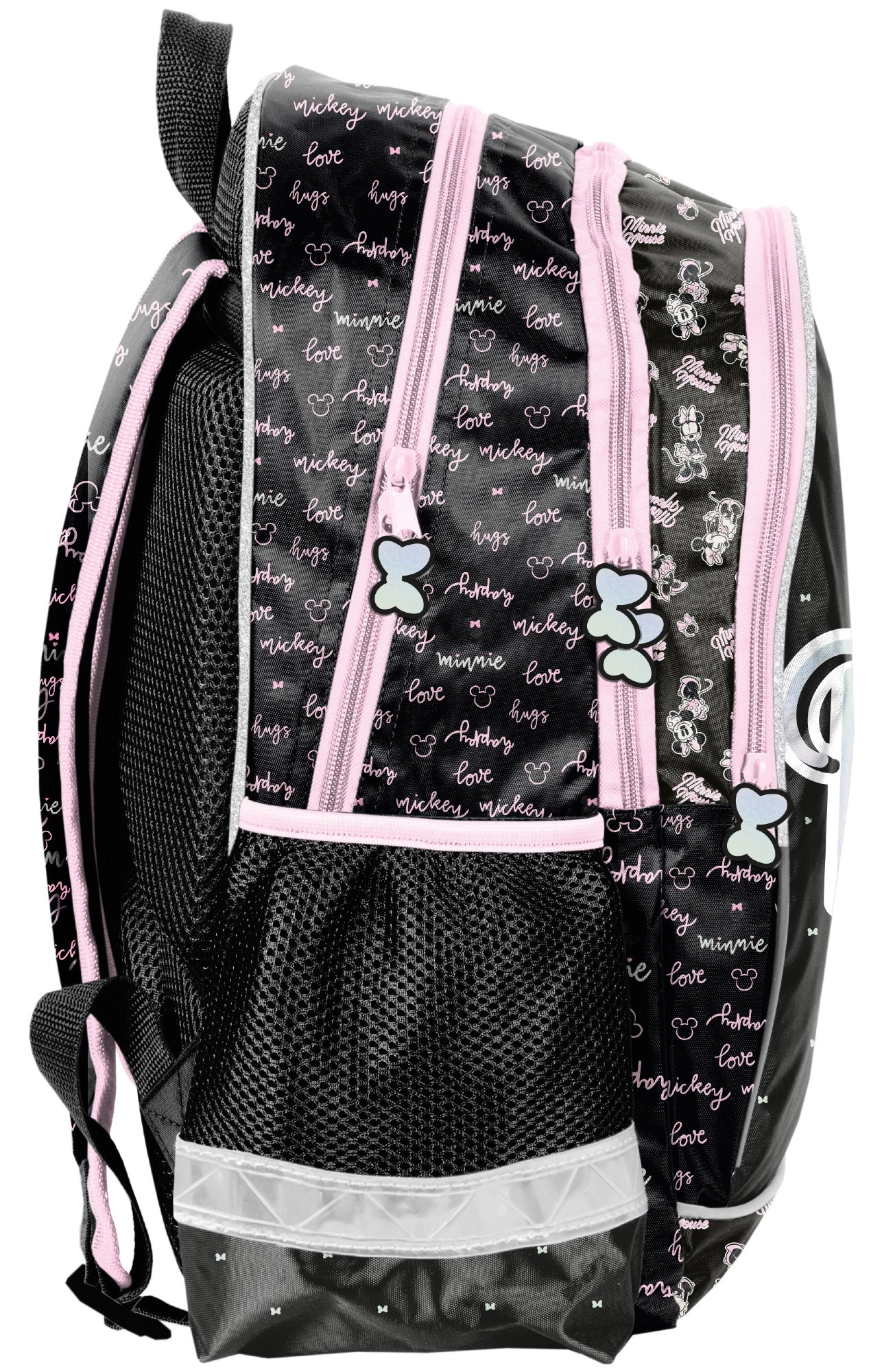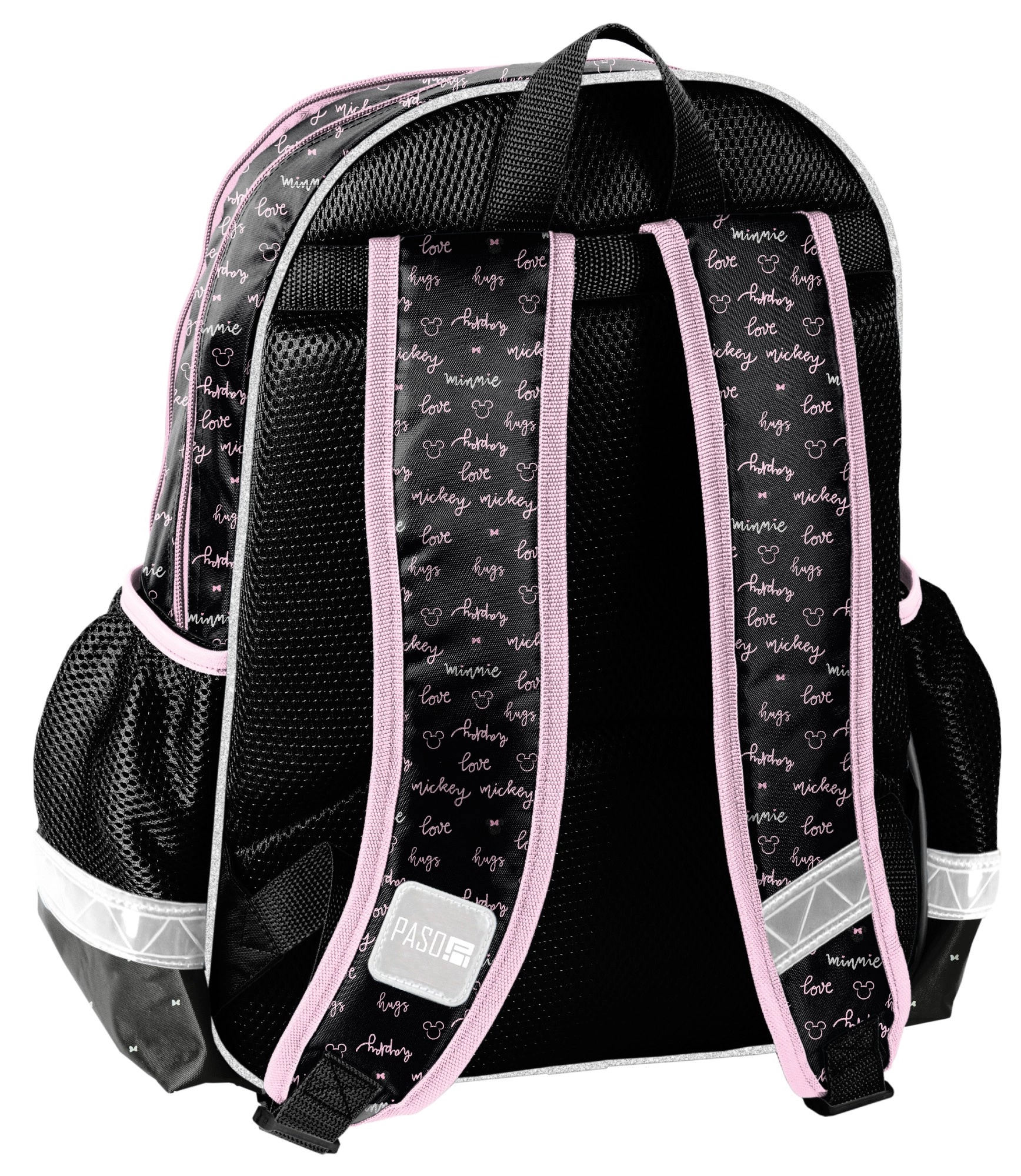 Stilinga mokyklinė kuprinė juodai–rožinės spalvos su MINNIE MOUSE motyvu iš Paso siūlo lengvą konstrukciją, sutvirtintą ir profiliuotą nugarėlę, ergonomiškas paminkštintas petnešas ir atšvaitinius elementus didesniam saugumui. Dvi pagrindinės sekcijos, priekinė kišenė ir šoninės tinklinės kišenės užtikrina tvarkingą mokyklinių reikmenų sudėjimą.