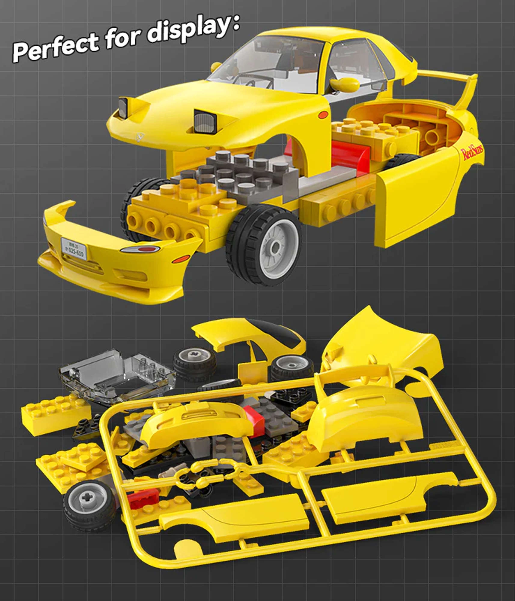Mėgaukitės legendinio Initial D serijos automobilio surinkimu – modeliu MAZDA RX-7 FD3S elegantiškos geltonos spalvos. Dėl 66 detalių šis modelis idealiai tinka mažiau patyrusiems statytojams ir vaikams nuo 8 metų. Yra guminiai ratai patogiam judėjimui įvairiais paviršiais ir kruopščiai atkurti akcentai, kurie pradžiugins kultinės serijos gerbėjus ir kolekcininkus.