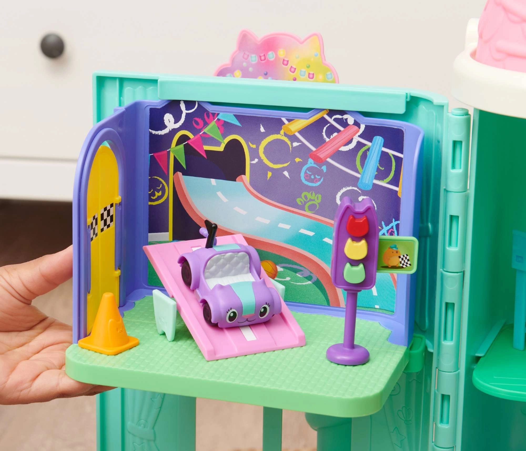 Atraskite spalvingą Kocifuro kambarį, įkvėptą mėgstamo serialo GABBY’S DOLLHOUSE. Vaikams patiks važiavimas rampa, sustojimas prie šviesoforo ir staigmenų dėžučių atidarymas. Rinkinys lavina vaizduotę, smulkiąją motoriką ir padeda kurti savas istorijas.