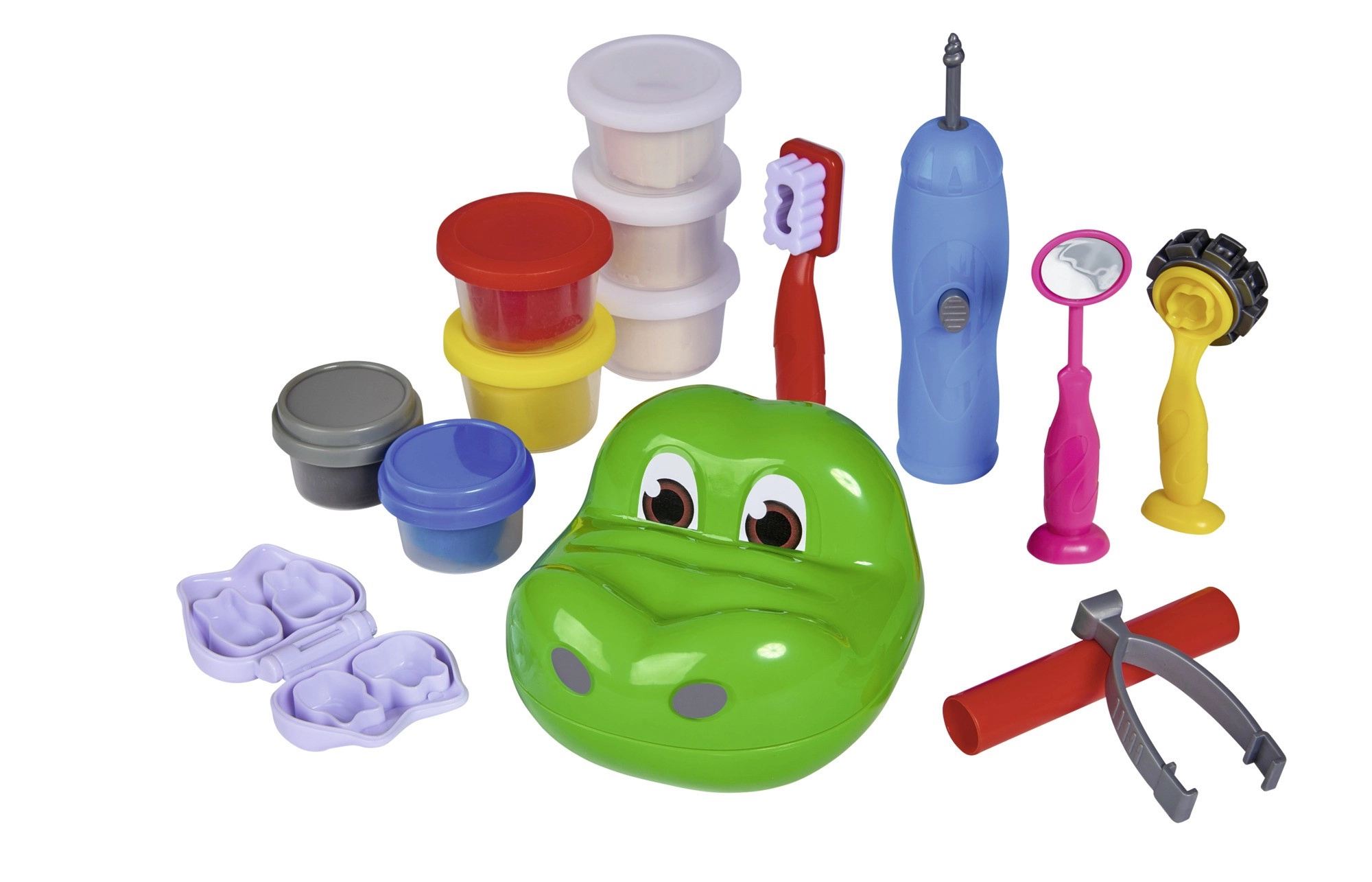 Šis odontologinis rinkinys su krokodilu siūlo realistišką, bet žaismingą dantų gydymo simuliaciją. Dėl gausios komplektacijos vaikai gali formuoti naujus dantis iš modelino, taisyti ėduonis, daryti plombas ir uždėti spalvingus breketus. Taip pat pridedamas šepetėlis ir veidrodėlis teisingai burnos higienai treniruoti.