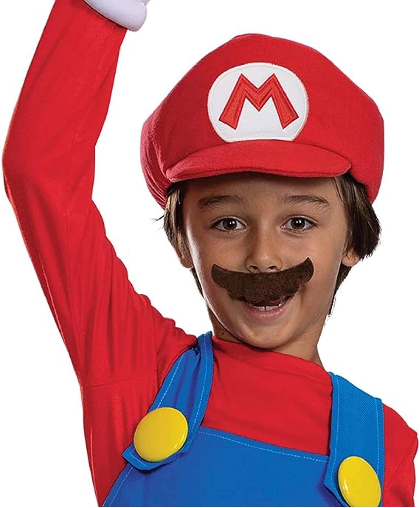 Ženkite į SUPER MARIO pasaulį su patogiu ir linksmu kostiumu vaikams nuo 4 iki 6 metų. Šis oficialiai licencijuotas Disguise rinkinys susideda iš raudonai mėlyno kombinezono su geltonais sagomis, kepurės ir ikoniškų ūsų. Puikiai tinka karnavalui, maskaradui ir žaidimams namuose – lengvas 100% poliesteris, paprasta priežiūra ir dydis ūgiui 109–126 cm.
