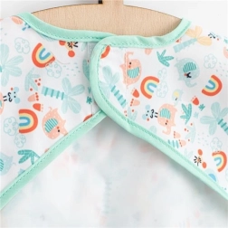 Ieškote patikimos drabužių apsaugos mažiesiems valgytojams ir kūrėjams? Vaikiškas seilinukas–prijuostė NEW BABY pagamintas iš minkšto ir lengvo poliesterio, kuris malonus liesti ir lengvai prižiūrimas. Dėl neperšlampamo apatinio sluoksnio drabužiai išliks švarūs net ir didesnės netvarkos metu.