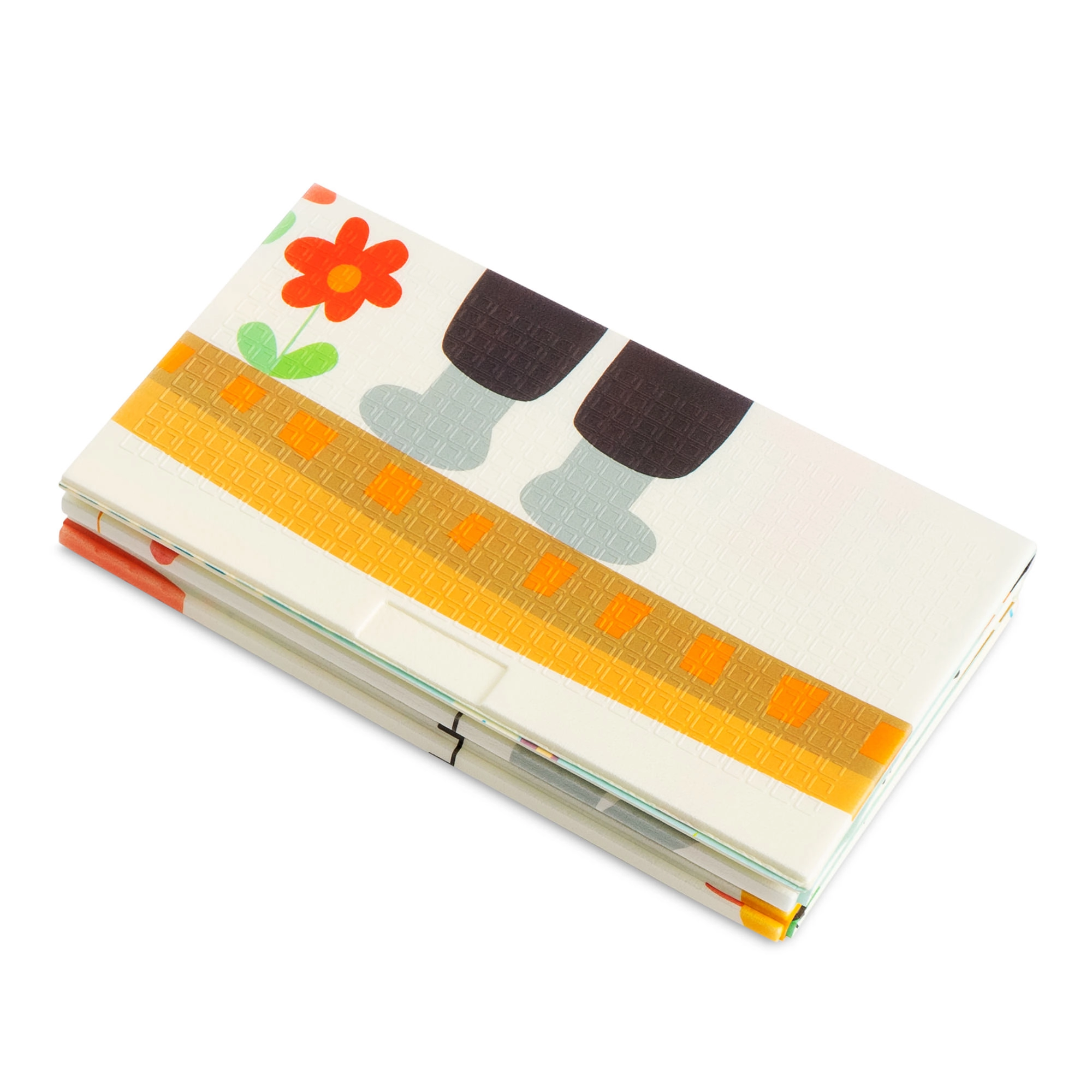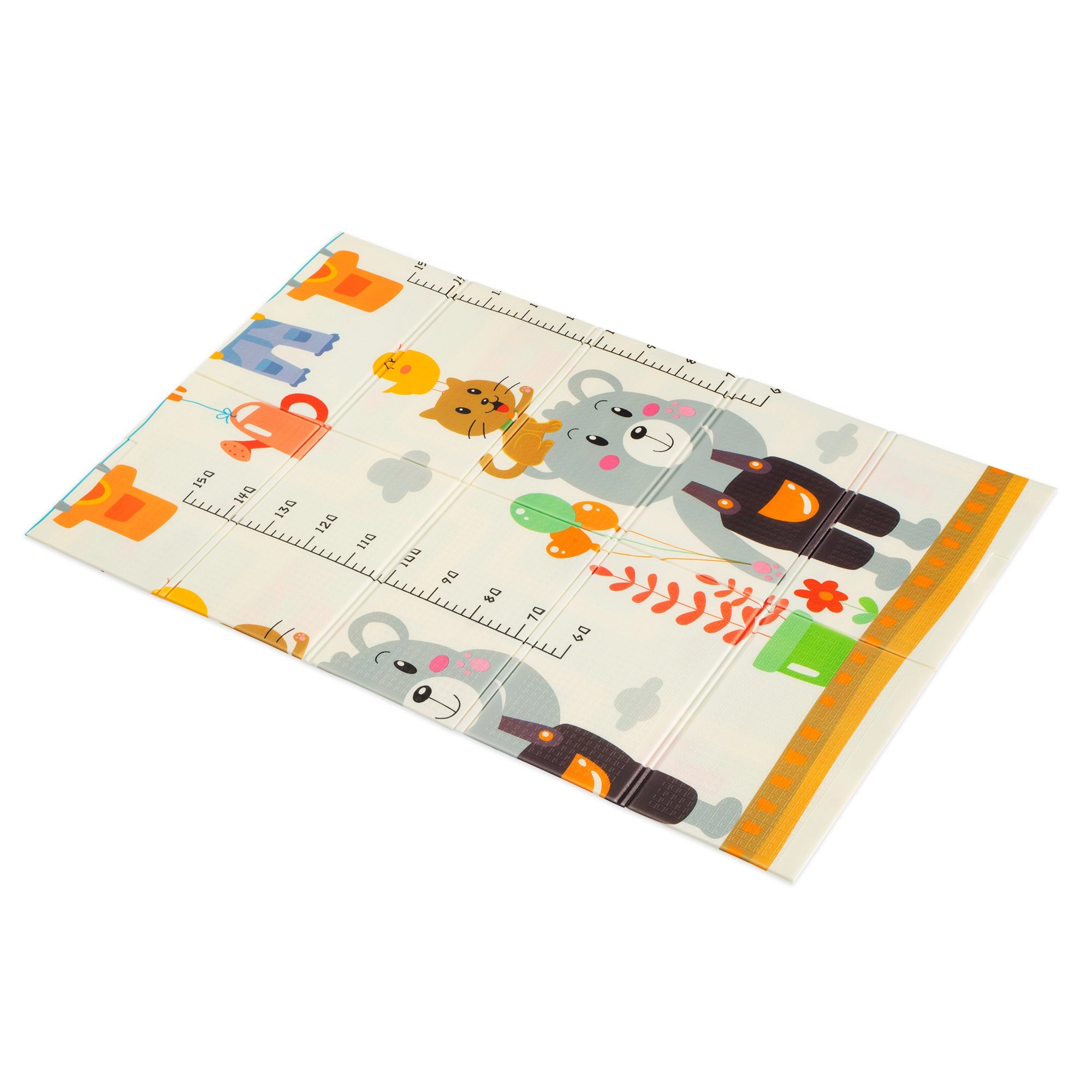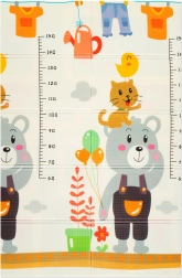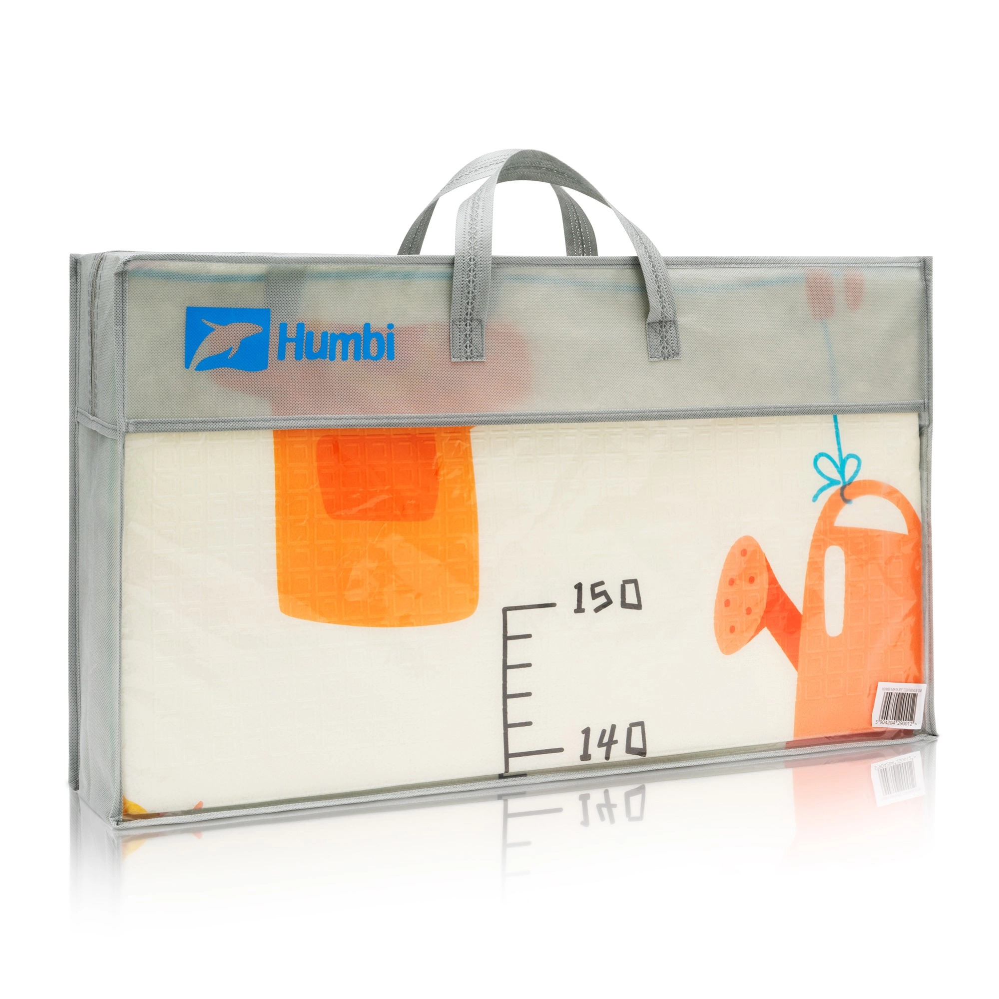 Praktiškas vaikiškas HUMBI kilimėlis iš aukštos kokybės XPE putų suteikia minkštą ir saugią erdvę žaidimams, ropojimui ir pirmiesiems žingsniams. Jis dvipusis (kačiukų motyvas su ūgio matuokliu / keliai ir transporto priemonės), sulankstomas, lengvas, atsparus vandeniui ir lengvai valomas. Pakuotėje yra transportavimo krepšys, patogus nešti namuose ir lauke.