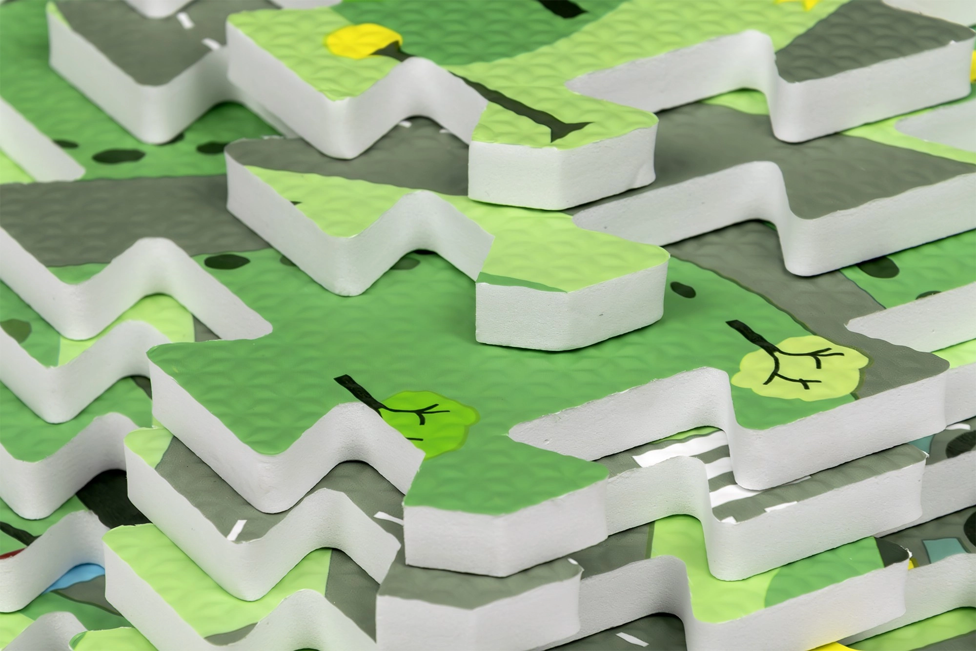 Dalis galima jungti į didesnius plotus arba statyti kubus ir kitas 3D formas. Kraštinės juostos užtikrina tvarkingą žaidimų zonos užbaigimą.
