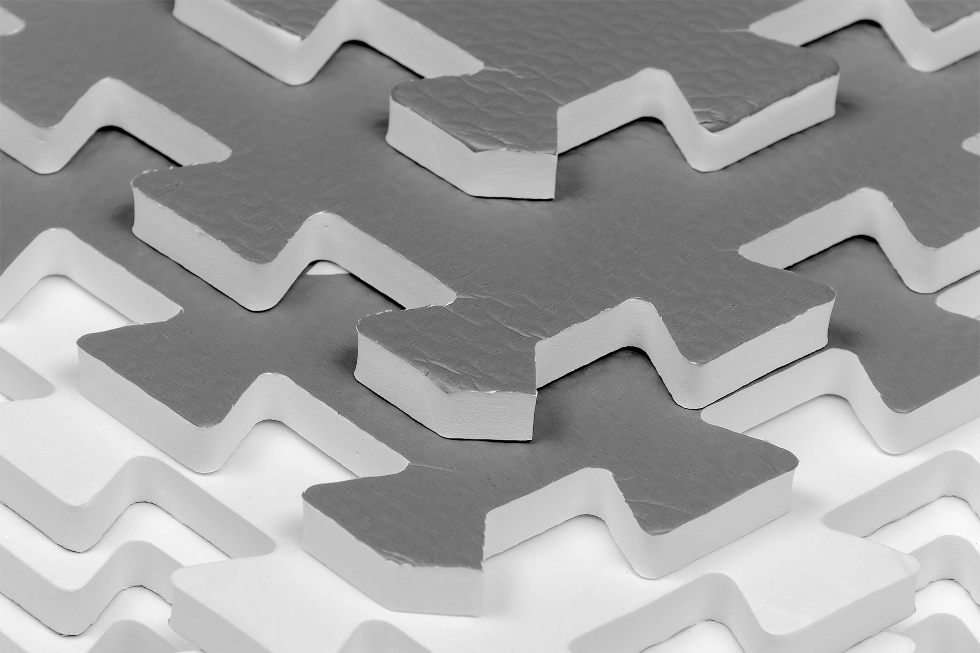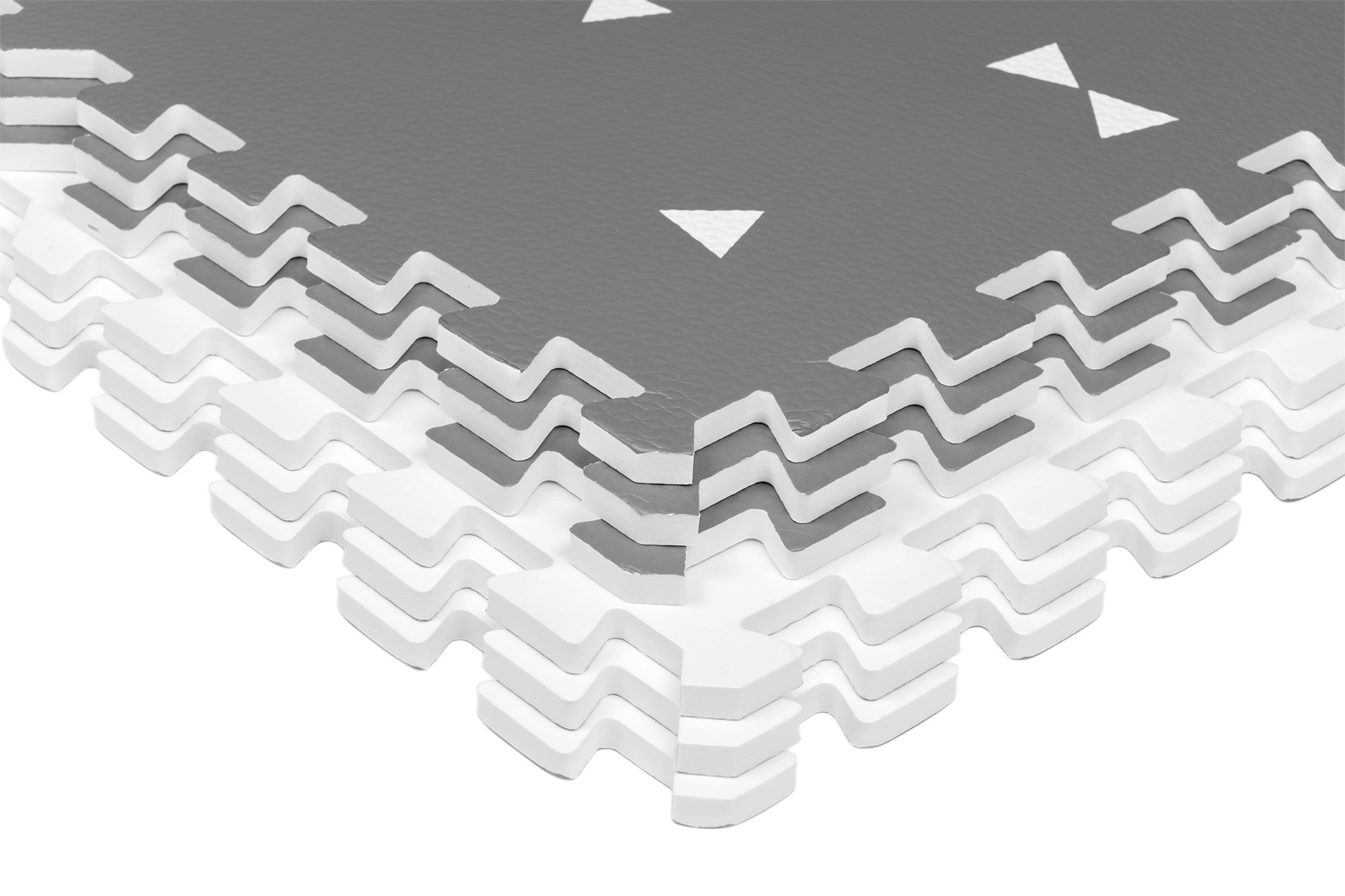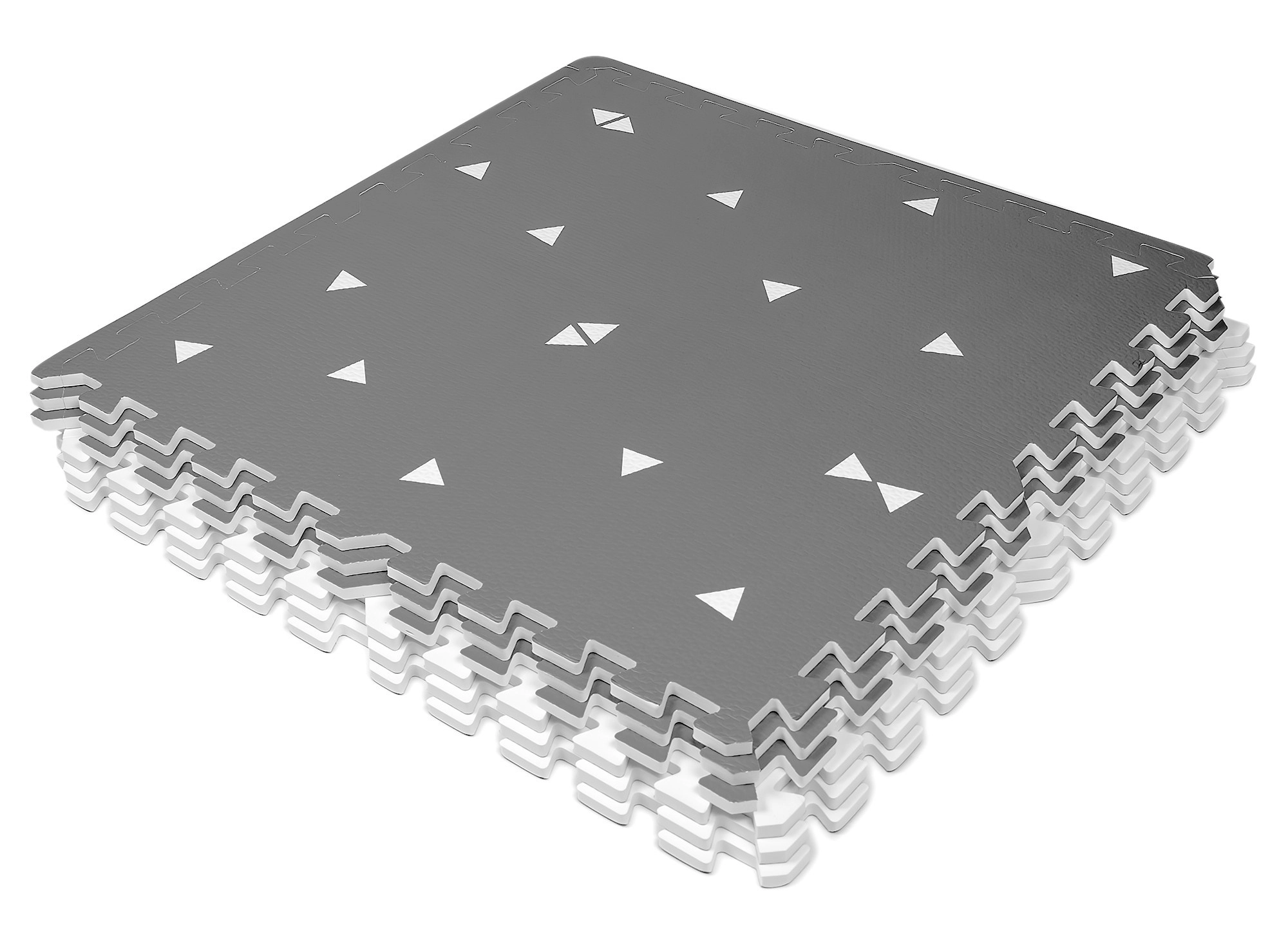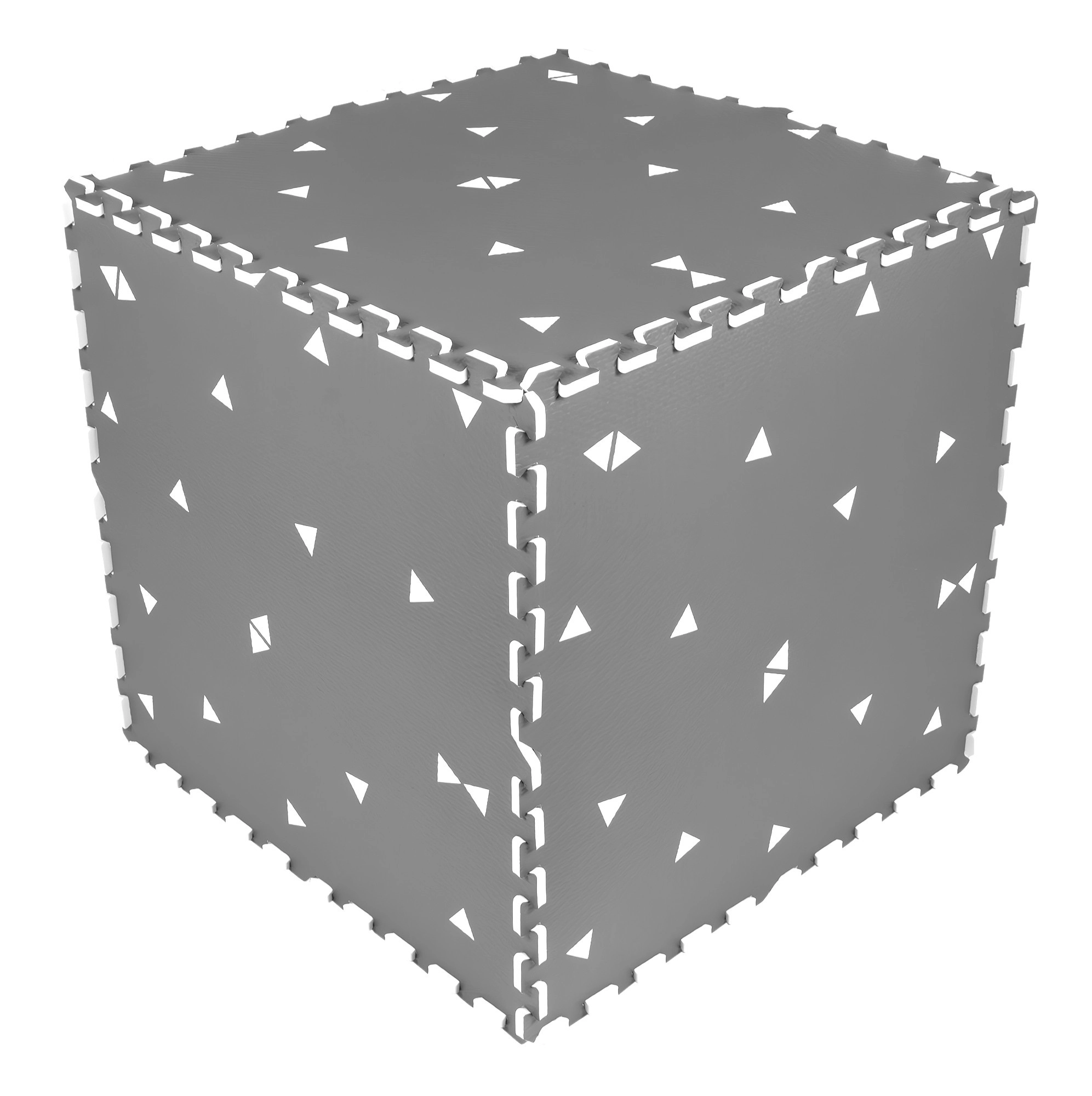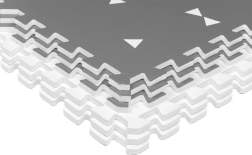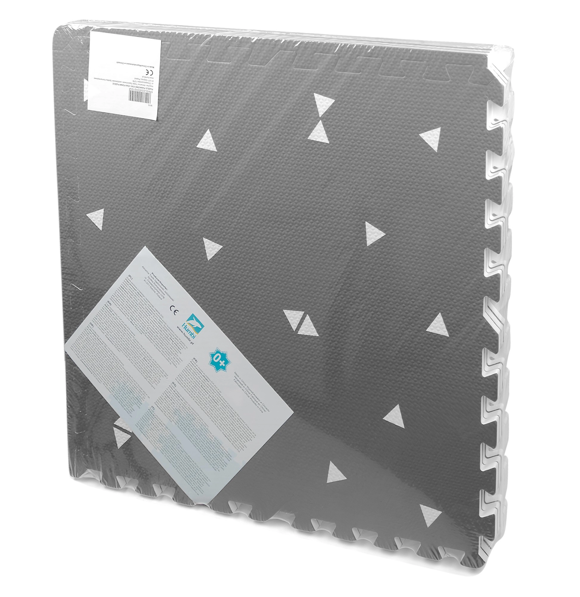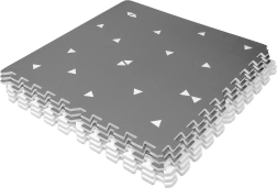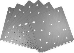 HUMBI putų kilimėlis sukuria kūdikiams ir mažyliams saugią vietą žaisti, ropoti ir žengti pirmuosius žingsnius. Dėl 1 cm storio puikiai izoliuoja šaltį ir sugeria smūgius ant kietų paviršių, tokių kaip plytelės, parketas ar laminatas. Subtilus pilkas dizainas su trikampiais tinka moderniems interjerams.