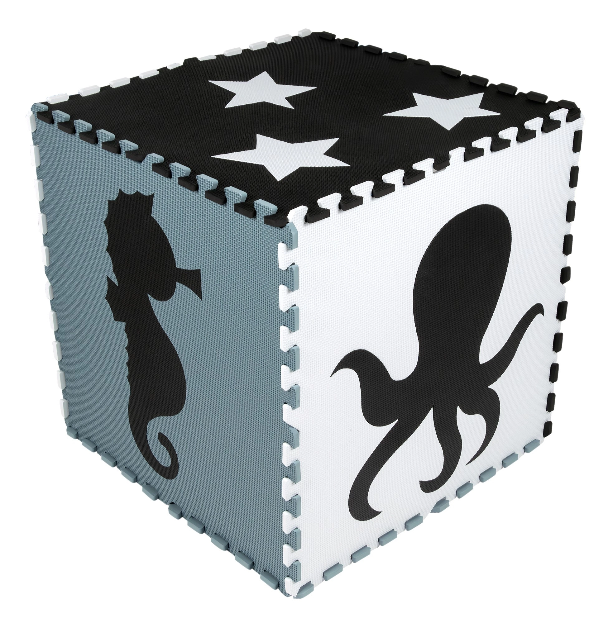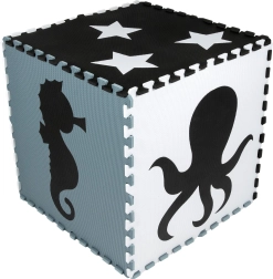 Neutralios, ramios spalvos netrukdo vaikui žaisti ir lengvai dera prie bet kurio interjero – vaikų kambario, žaidimų erdvės ar darželio. Išimami centriniai elementai su formomis (jūrų arkliukas, vėžlys, žuvis, medūza, banginis, aštunkojis, delfinas, žvaigždės ir krabas) padeda lavinti motoriką ir mokytis apie gyvūnus. Elementus galima plėsti (to paties modelio ribose) ir surinkti į kubą ar kitas 3D formas.