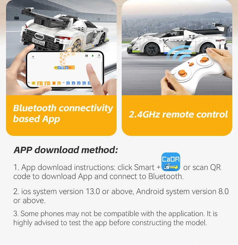Dvigubas režimas (Dual Mode) leidžia valdyti 2,4 GHz pulteliu, kurio veikimo nuotolis daugiau nei 25 m, arba per Bluetooth programėlę (Android/iOS) su 4 išmaniais režimais: nuotolinis valdymas (remote control), programavimas „scratch“, giroskopo valdymas (gyroscope control) ir trajektorijos režimas (path mode). Dėl aiškaus instrukcijų vadovo modelis tinka ir jaunesniems, ir patyrusiems statytojams, o elegantiška pakuotė puikiai tiks kaip dovana.