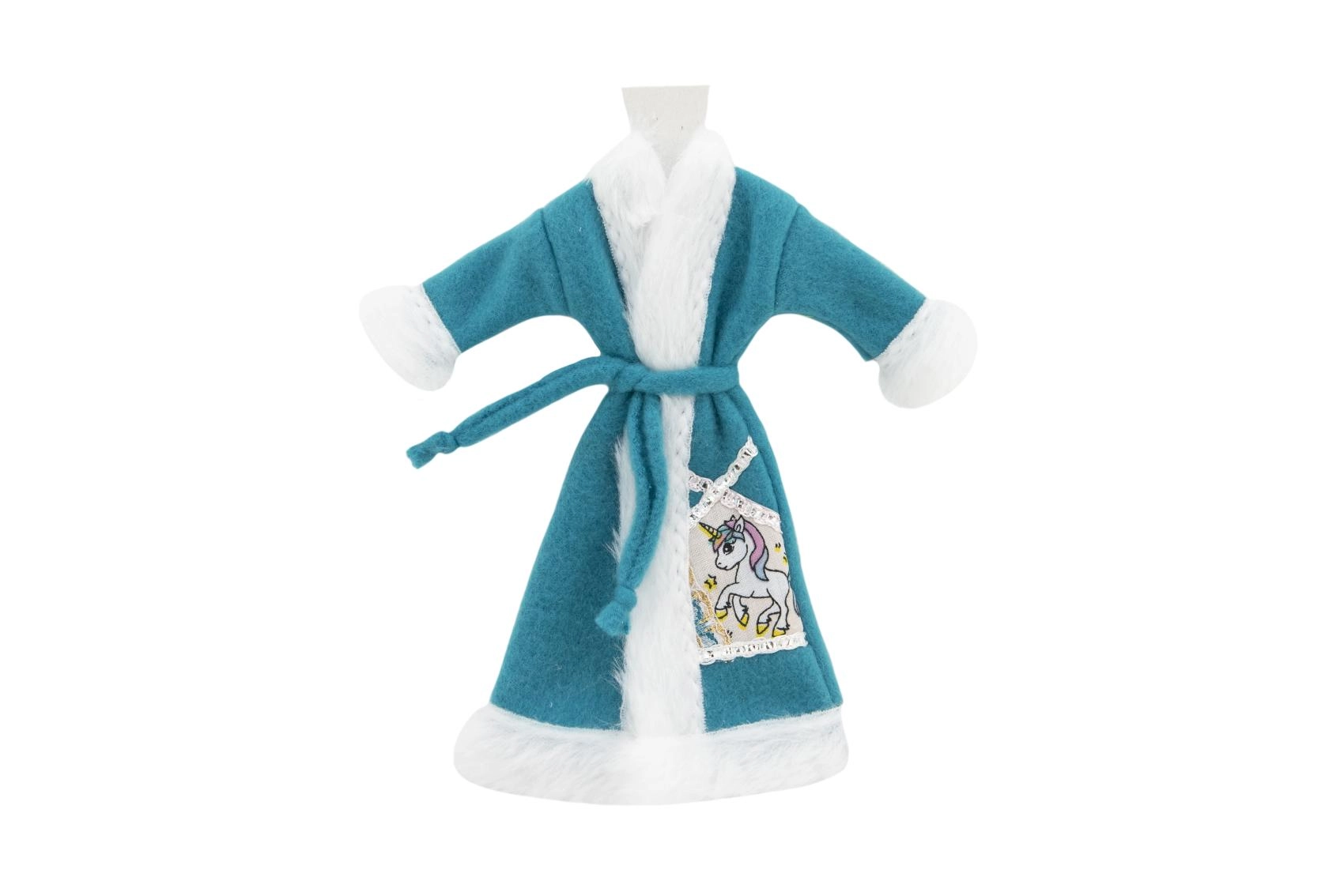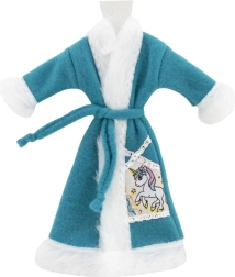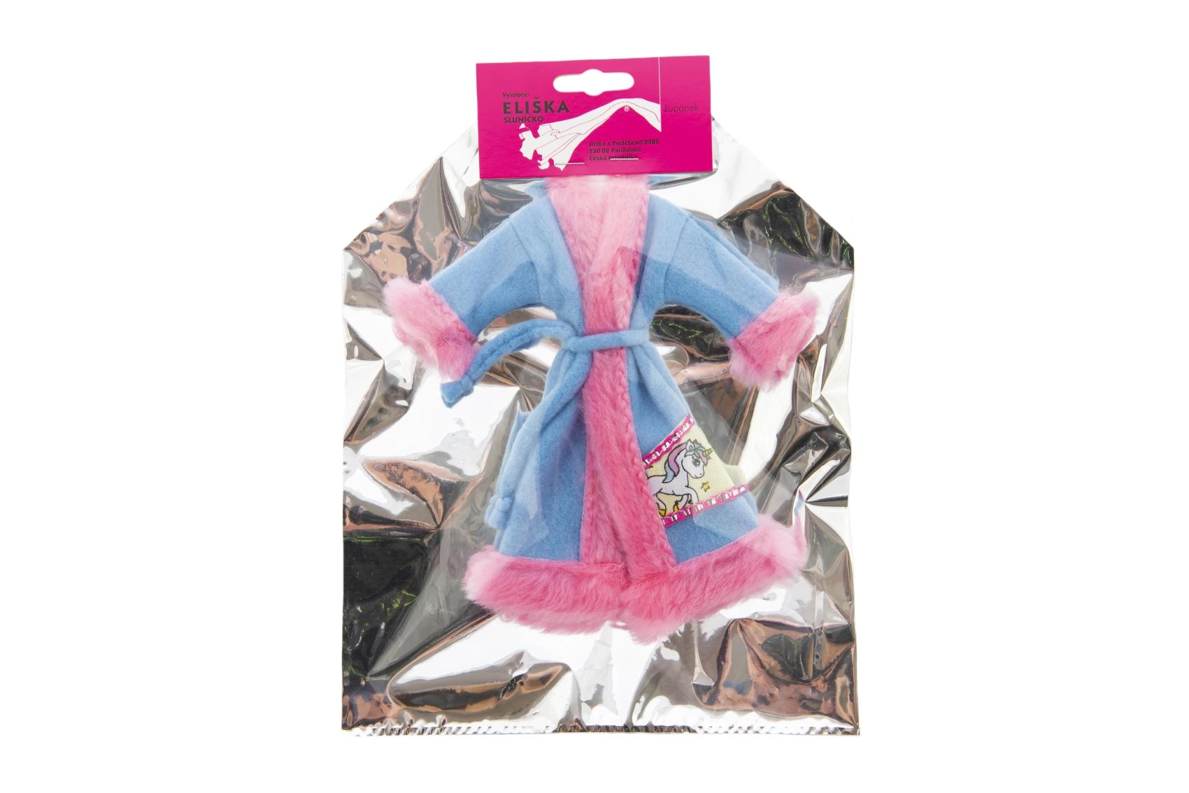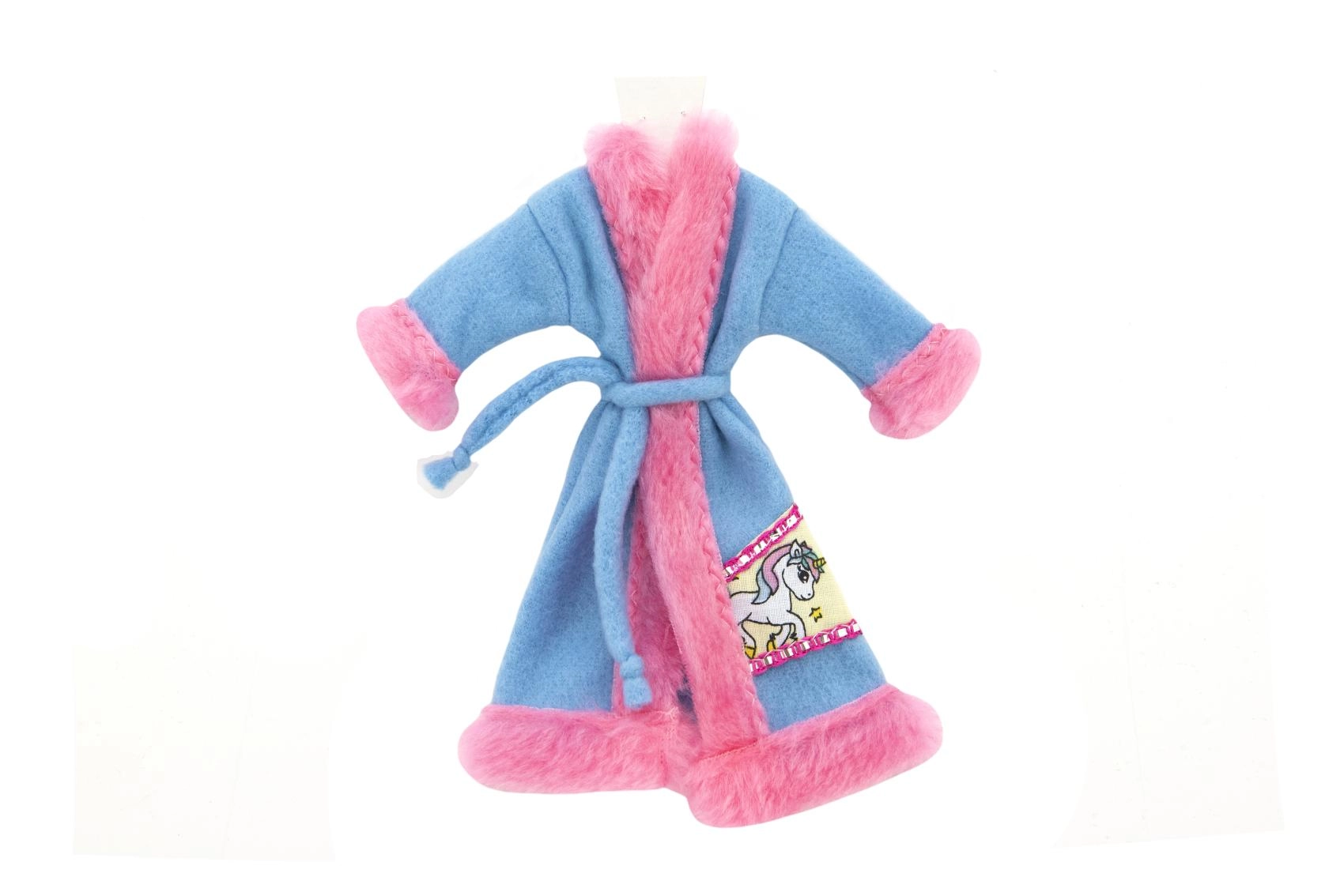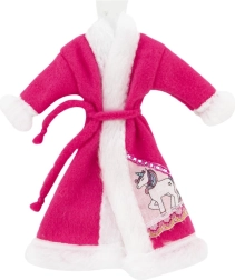Stilingas lėlių chalatelis su aksomiškai švelniu paviršiumi ir surišamu dirželiu sušildys po maudynių ir vakaro ritualų metu. Galimas įvairių spalvų ir motyvų (pvz., vienaragis), lengvai derinamas su kitais drabužėliais.
