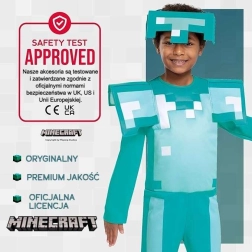Šis oficialiai licencijuotas MINECRAFT deimantinės ginkluotės kostiumas paverčia vaikus mėgstamo žaidimo herojais. Minkštą pikselių rašto kombinezoną ir ryškius peties skydelius papildo lengvas šalmas, suteikiantis kostiumui ikonišką išvaizdą. Dėl malonių medžiagų kostiumą patogu dėvėti net ir ilgiau.