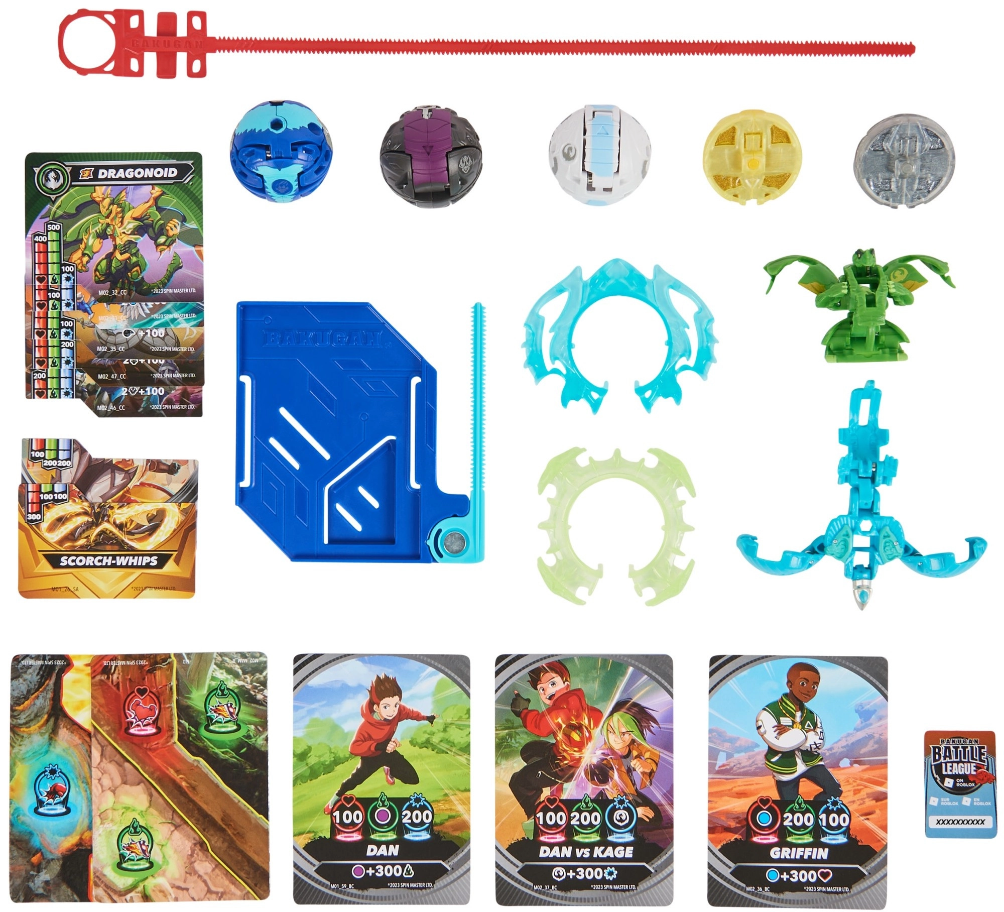 Su šiuo rinkiniu žengsite į strateginę BAKUGAN pasaulio kovą. Rinkinys sujungia kolekcines figūrėles su sklandžia transformacija iš rutulio į žvērį, žaidimo kortas ir ripcord sistemą greitam startui. Prikelkite savo kovotojus kortose ir valdykite areną sumaniai pasirinkta taktika.
