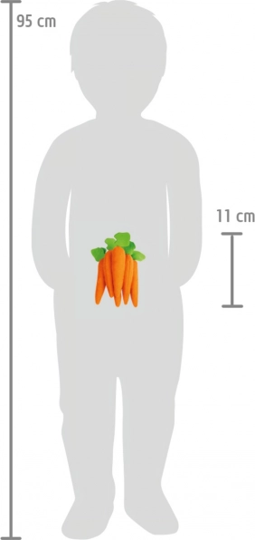 Papildykite savo vaikišką virtuvėlę ar ūkininko parduotuvėlę šiomis tikroviškomis veltomis morkomis. Rinkinyje yra 7 vnt., kurios ne tik paįvairins kiekvieną žaidimą, bet ir puikiai tiks kaip pašaras jūsų pliušiniams arkliams, poniams ar triušiams.