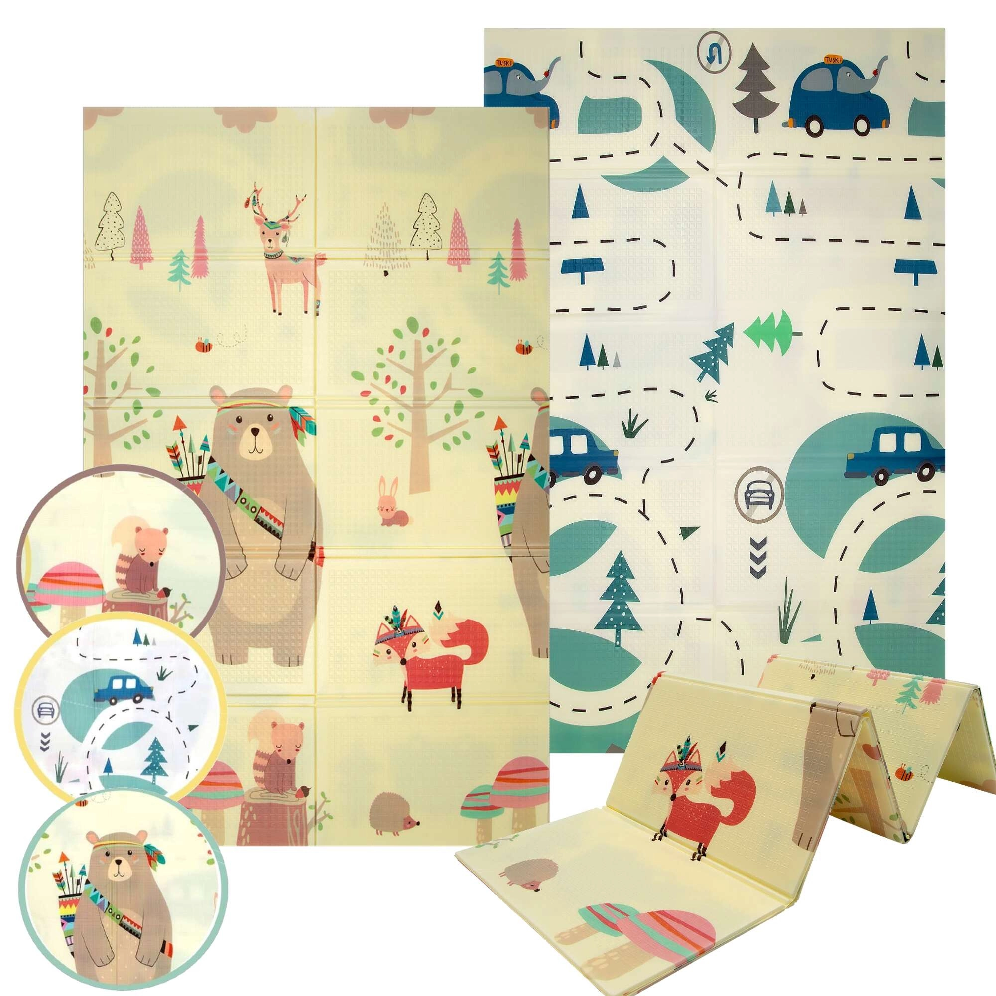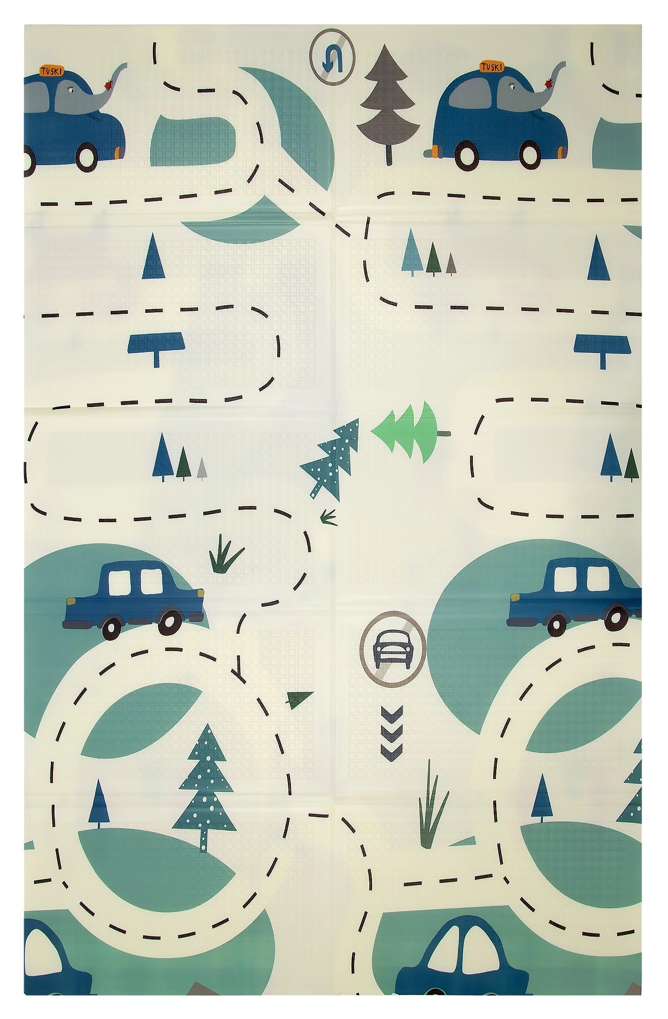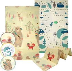HUMBI kilimėlis vaikams suteikia minkštą ir saugią vietą žaidimams, poilsiui ir motorikos lavinimui. Kokybiškas XPE putplastis yra tvirtas, gerai sugeria smūgius ir puikiai izoliuoja šaltį nuo grindų. Dvipusis dizainas siūlo vienoje pusėje mielus miško motyvus (meškučiai, lapės, ežiukai), o kitoje – kelią su mašinėlėmis smagiam važiavimui ir jutiminiams atradimams.