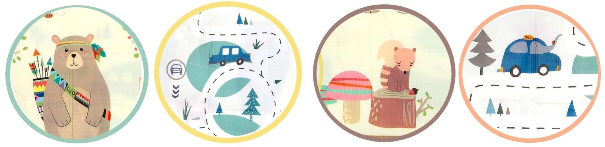 Viena pusė su mielais gyvūnėliais vaikų kambariui, kita – su keliu ir automobiliais žaidimams su mašinėlėmis. Lengvai priderinsite prie interjero ir vaiko nuotaikos.