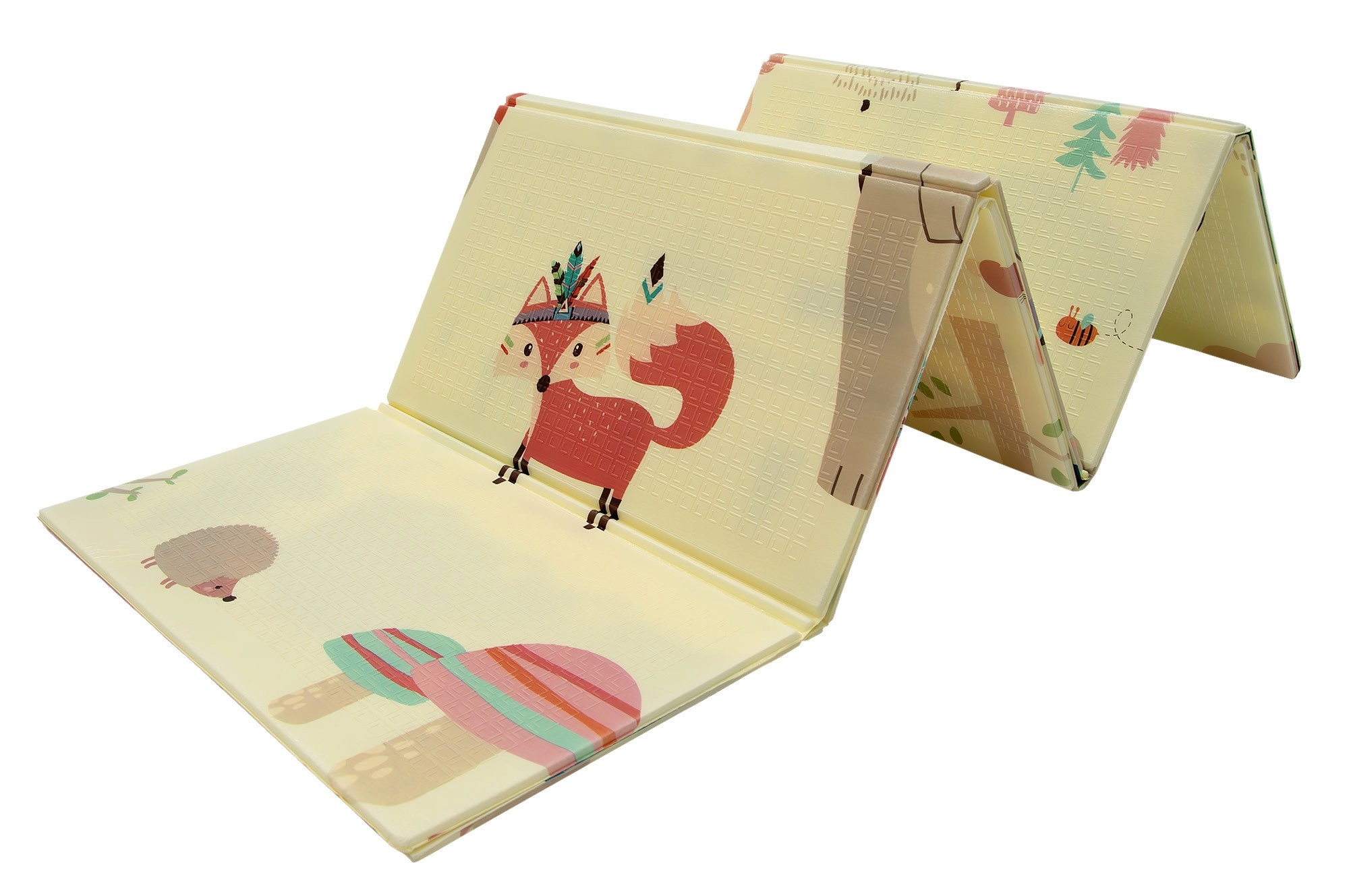 Dėl sulankstomos konstrukcijos per kelias akimirkas jį sulankstysite ir įdėsite į pridedamą krepšį su rankena. Jis atsparus vandeniui, lengvai nuvalomas ir su švelniu neslystančiu reljefu skatina saugų ropojimą ir ėjimą. Tinka vaikams nuo gimimo, vaikų kambariui, svetainei, balkonui ir sodui.