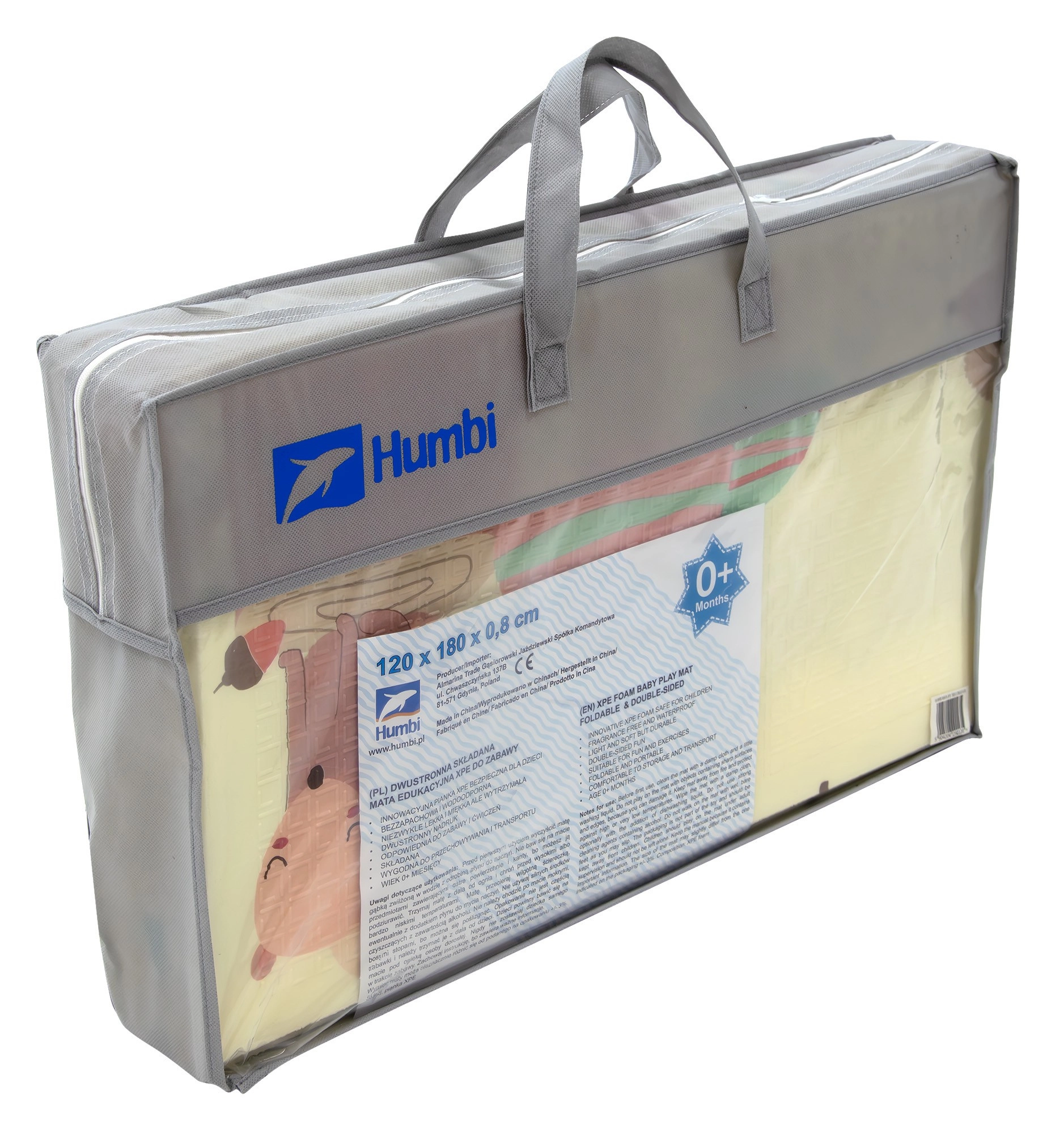 Praktiškas ir patogus HUMBI vaikiškas kilimėlis iš kokybiško XPE putplasčio siūlo 120 × 180 cm dydį ir 0,8 cm storį saugiam žaidimui, ropojimui ir pirmiesiems žingsniams. Jis yra dvipusis, sulankstomas, lengvas ir dėl vandeniui atsparaus paviršiaus lengvai prižiūrimas. Be BPA, ftalatų, PVC ir formamido, atitinka EN71 ir REACH normas, puikiai tinka naudoti viduje ir lauke.