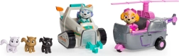 Leiskitės į gelbėjimo misiją su PAW Patrol rinkiniu su Skye ir Everest! Pakuotėje rasite Skye sraigtasparnį, Everest sniego motociklą ir 5 figūrėles, įskaitant 3 mielus kačiukus. Transporto priemonės turi besisukantį rotorių, važiuojančius ratukus ir vikšrus, o šuniukų figūrėlės – judančias galvas. Idealu kūrybiškam ir nuotykių kupinam žaidimui vaikams nuo 3 metų.