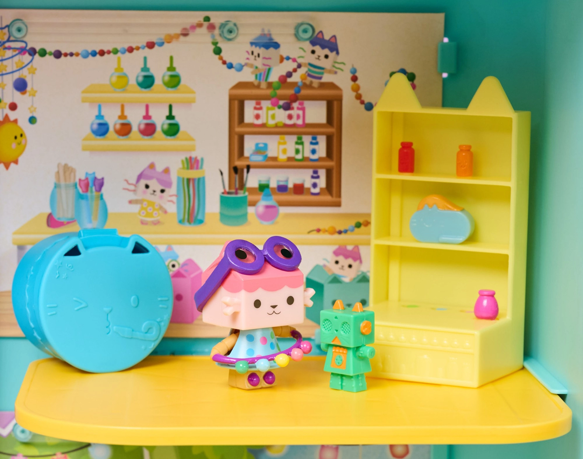 Ženkite į kačių pasaulį su žaidimų rinkiniu, įkvėptu populiaraus serialo GABBY’S DOLLHOUSE. Rinkinys „Cat-Terrific Celebration“ pristato Tekturko figūrėlę su judančia galva ir teminius priedus, kurie leis vaikams atkartoti serialo scenas arba kurti savo nuotykius. Atsparios medžiagos ir detalus atlikimas užtikrina ilgaamžiškumą net kasdien žaidžiant.