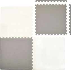 Praktiškas vaikų kilimėlis iš EVA putų, sudarytas iš didelių dėlionių dalių, sukuria minkštą, saugų ir neslystantį paviršių žaidimams, ropojimui ir pirmiesiems žingsniams. Rinkinyje 4 plytelės, 60 × 60 cm, su kraštais, kurias lengvai sudėsite į 120 × 120 × 1 cm, plyteles galima jungti ir plėsti papildomais rinkiniais. Kilimėlis yra atsparus vandeniui, izoliuoja šaltį nuo grindų, sugeria smūgius ir lengvai valomas nušluostant.