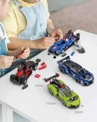 Kompaktiški matmenys ir ryškios spalvos paverčia modelį patrauklia dekoracija. Taip pat idealiai tinka bendrai statybai ir šeimos lenktynėms.
