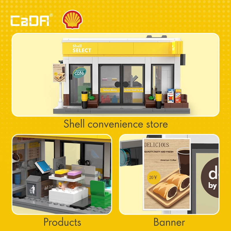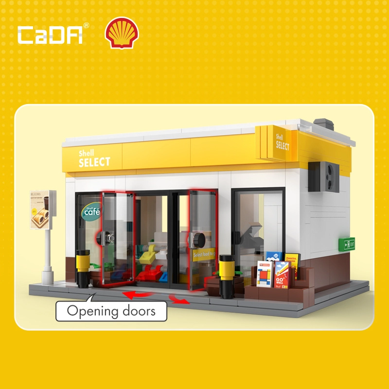 CaDA konstruktorius pristato detaliai sukurtą vieno aukšto mini SHELL parduotuvę su realistiškais elementais, tokiais kaip stumdomos / atsidarančios durys, vitrinos, plakatai ir interjero įranga. Puikiai tinka vaikams nuo 8 metų ir suaugusiems konstruktorių gerbėjams, kurie vertina tikslumą ir stilingą ekspozicinį modelį.