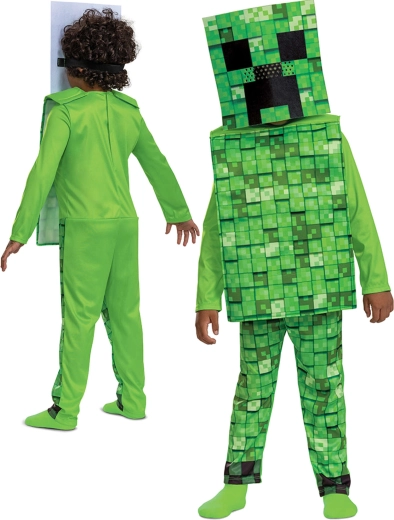 Originalus vaikiškas Creeper kostiumas iš populiaraus žaidimo MINECRAFT, tinkamas ūgiui 137–149 cm (apie 10–12 metų). Kostiumas su būdingu pikseliniu raštu siūlo pilną dengimą, patogų kirpimą ir lengvą apsirengimą – idealu karnavalui, Helovinui ir žaidimams namuose. Komplekte yra kombinezonas ir kaukė/galva autentiškai išvaizdai.