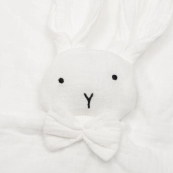 Muselininis migdukas NEW BABY Rabbit, baltas, yra švelnus mažylio bičiulis, padedantis nusiraminti, jaustis saugiai ir greičiau užmigti. Lengvas ir kvėpuojantis muselinas iš ekologiškos medvilnės yra švelnus jautriai kūdikio odai ir užtikrina malonų prisilietimą.