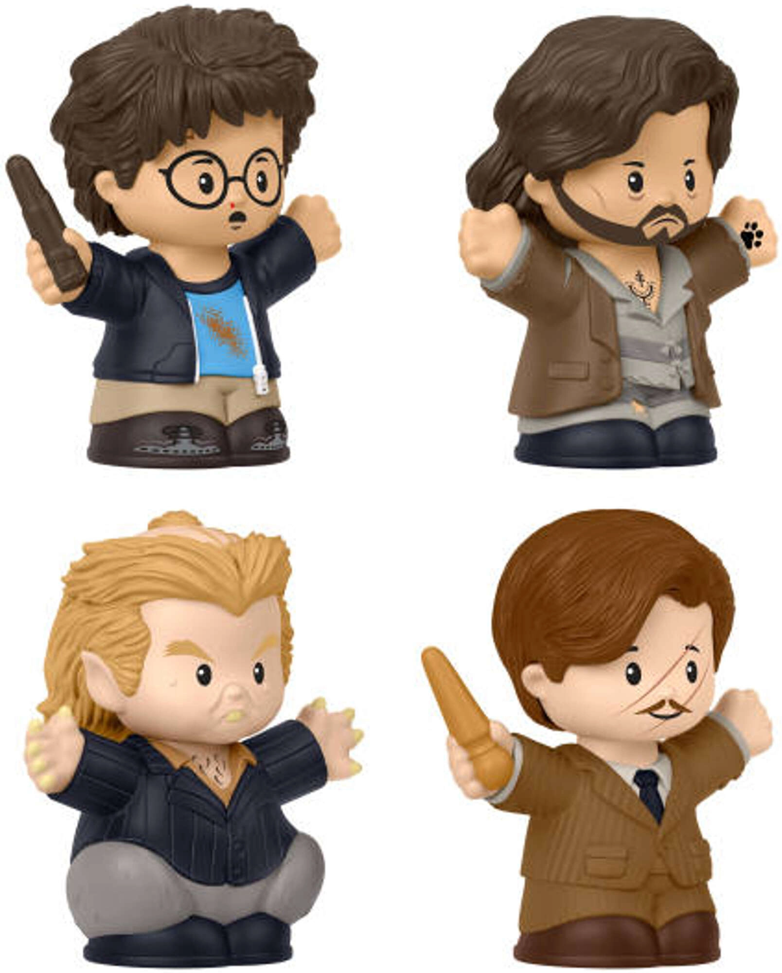 HARRY POTTER, Remus Lupin, Sirius Black ir Peter Pettigrew vieningo chibi stiliaus su lazdelėmis – paruošti žaidimams ir eksponavimui.