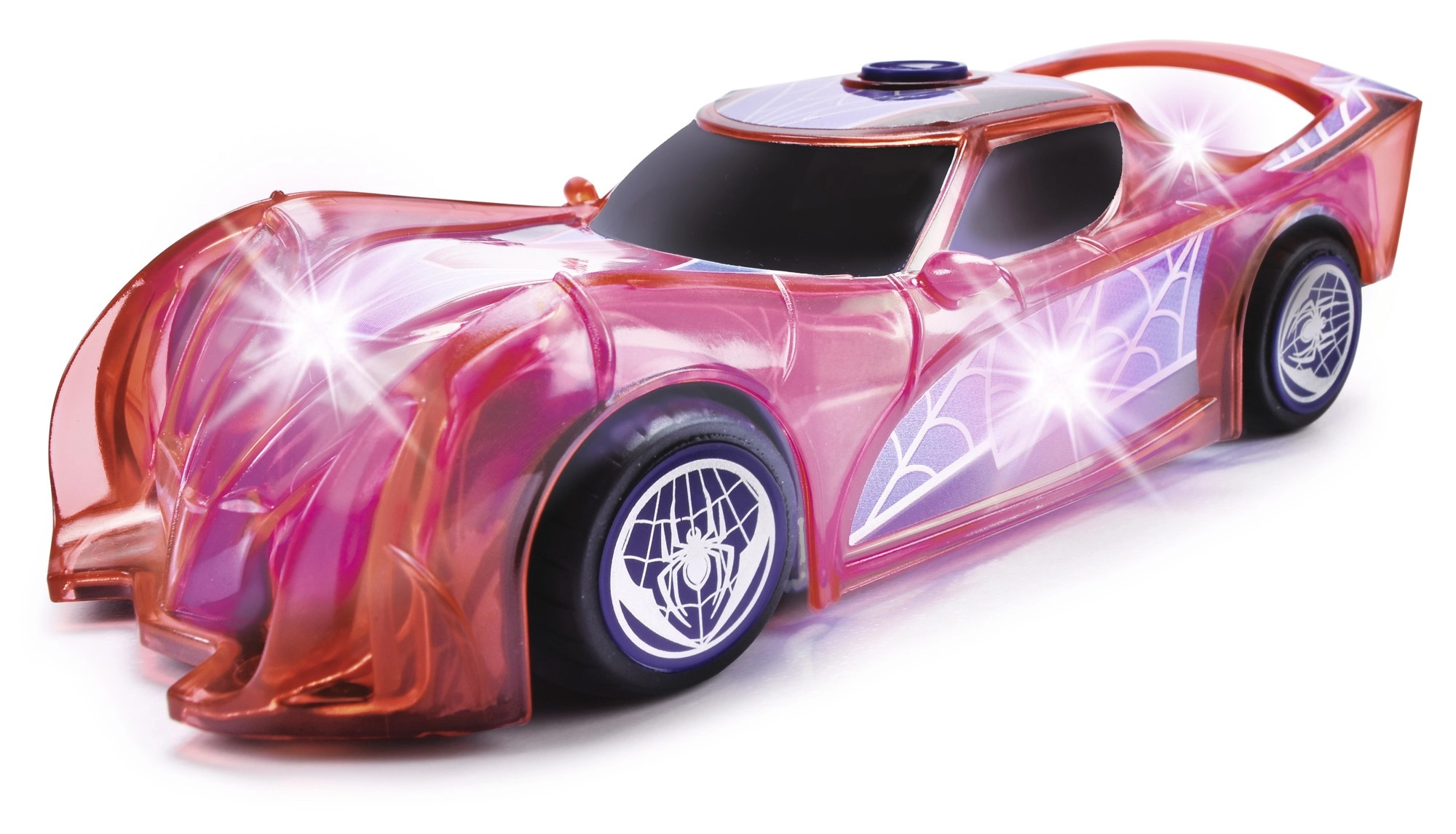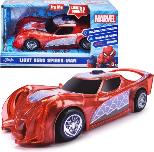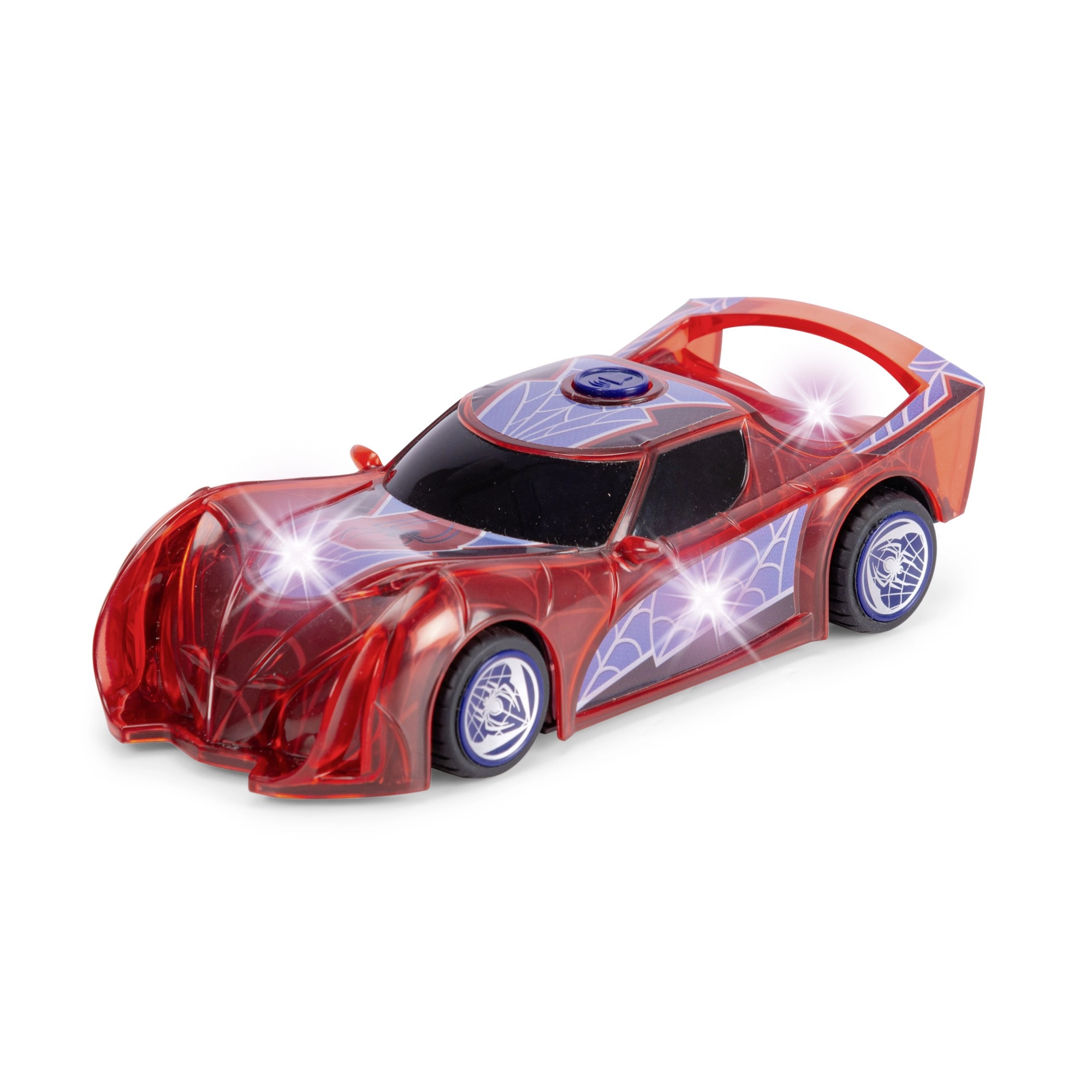 Superherojų automobilis SPIDER‑MAN būdinga raudona spalva ir voratinklių detalėmis išsiskiria permatomu dizainu ir integruotomis LED šviesomis, kurios apšviečia kiekvieną nuotykį. Paprastas push‑and‑go mechanizmas (frikcinė pavara) – pakanka lengvai pastumti, ir automobilis šauna pirmyn.