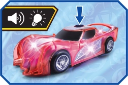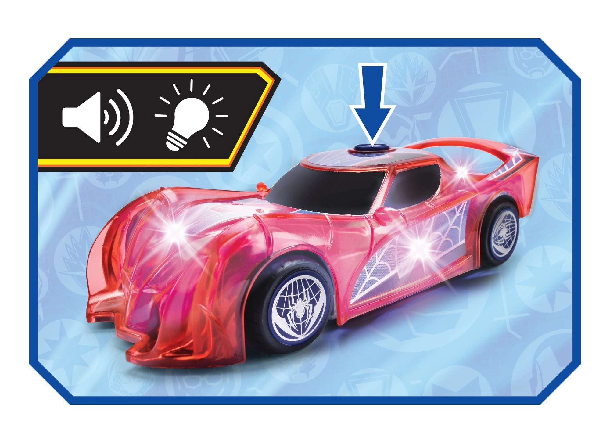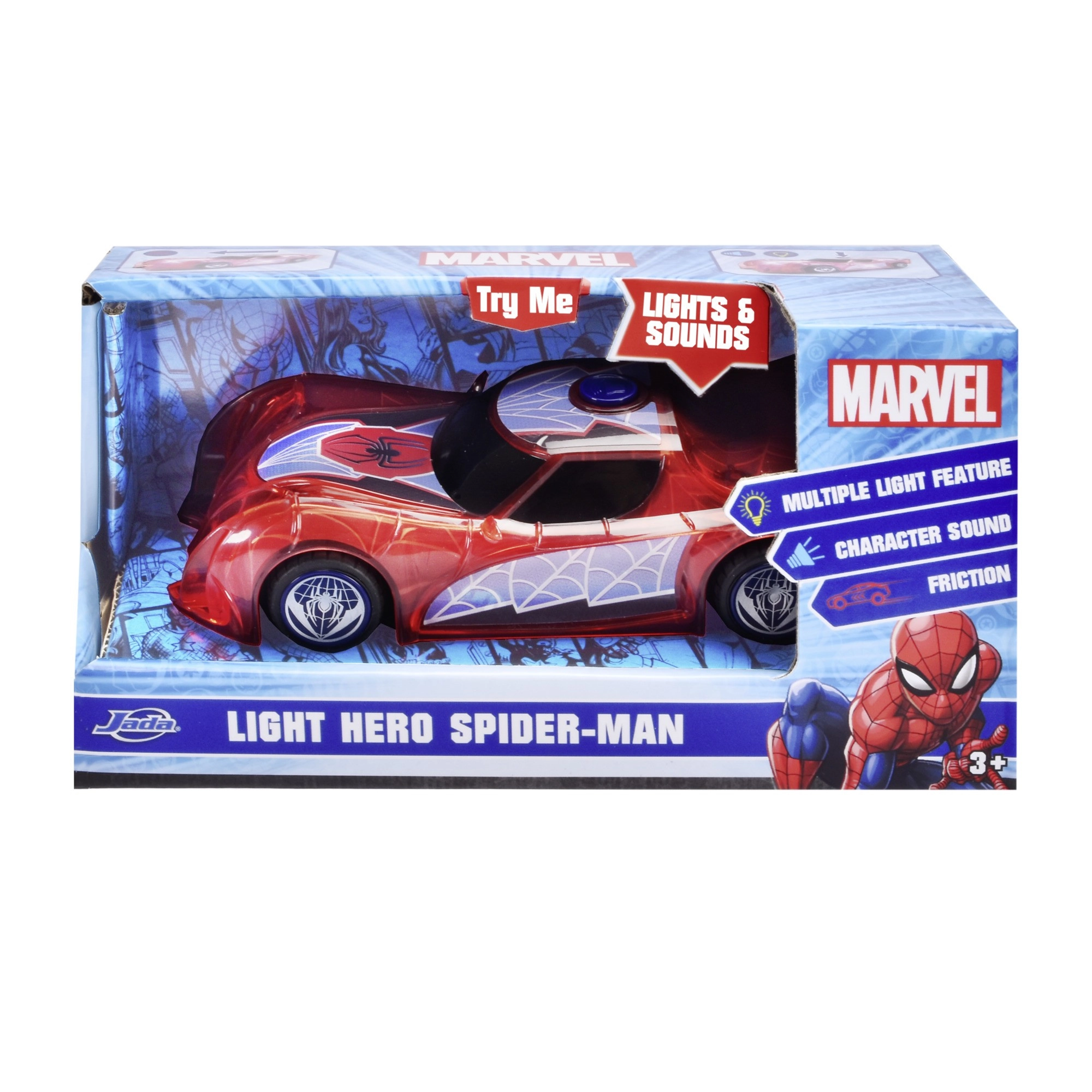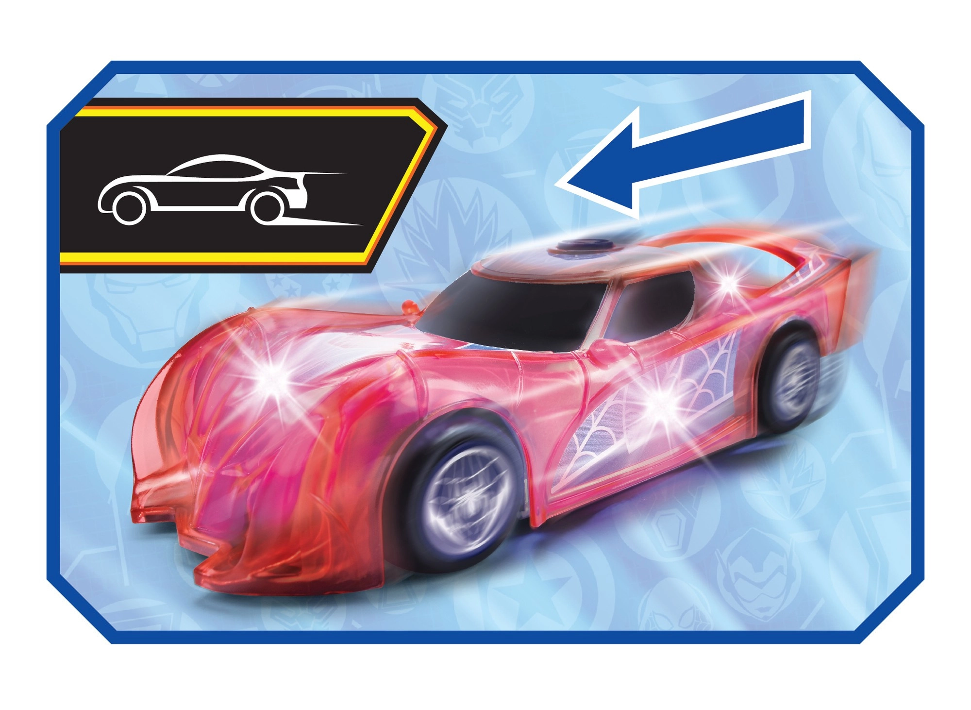 Superherojų automobilis SPIDER‑MAN būdinga raudona spalva ir voratinklių detalėmis išsiskiria permatomu dizainu ir integruotomis LED šviesomis, kurios apšviečia kiekvieną nuotykį. Paprastas push‑and‑go mechanizmas (frikcinė pavara) – pakanka lengvai pastumti, ir automobilis šauna pirmyn.