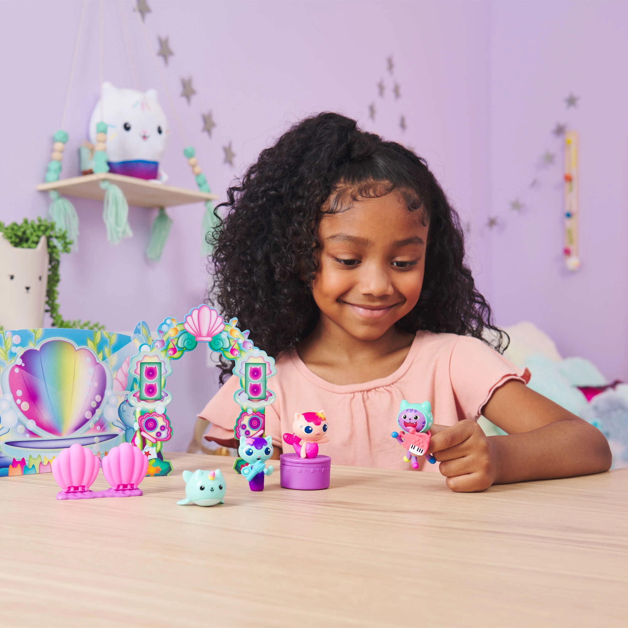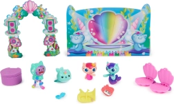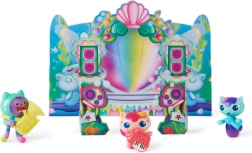 Ši povandeninė scena iš mylimo serialo GABBY'S DOLLHOUSE idealiai tinka mažiesiems muzikos ir fantazijos gerbėjams. Rinkinyje – pamėgti veikėjai DJ Catnip, MerCat, Sunny Cat ir Kitty Narwhal su autentiška išvaizda ir patraukliomis detalėmis. Atveriamos kriauklių kėdutės, prisegamas mikrofonas ir sulankstoma scena pavers kiekvieną dieną smagiu pasirodymu.