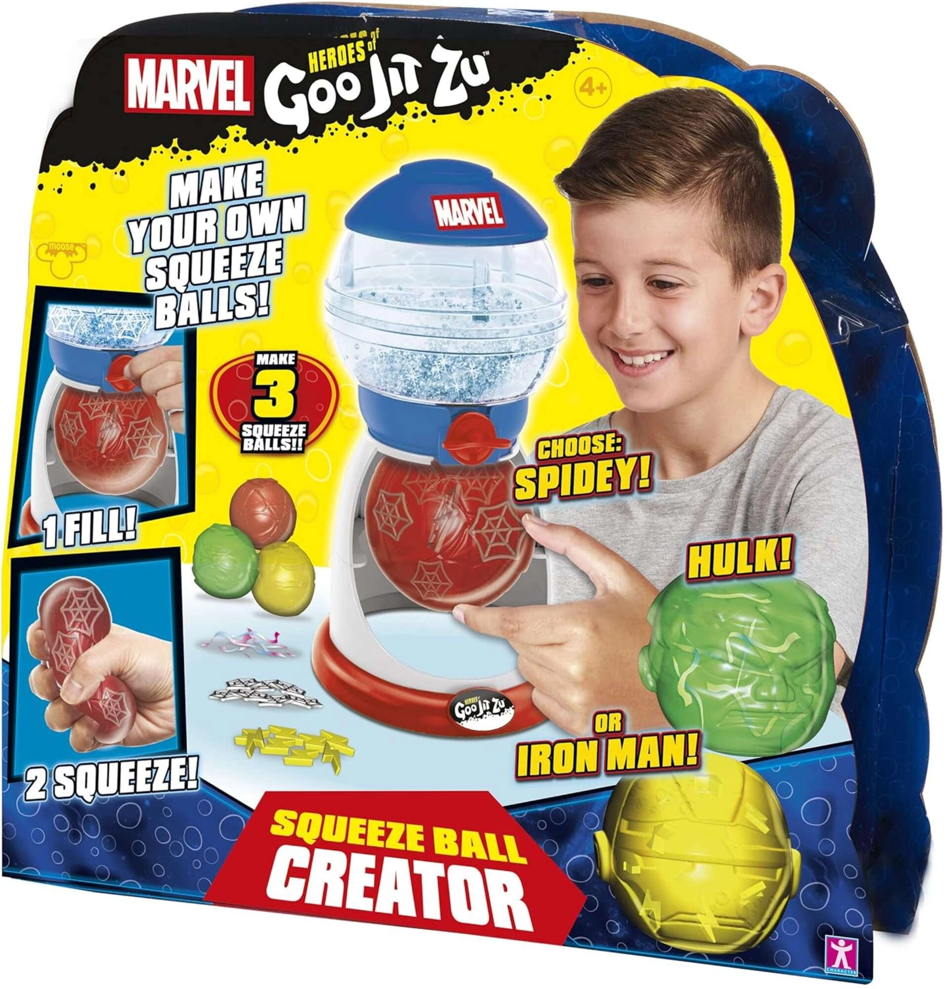 Sukurkite savo antistresinius kamuoliukus su MARVEL herojais naudodami rinkinį Squeeze Ball Creator. Lengvas naudojimas, kūrybiškas smagumas ir jutiminis nusiraminimas viename – pripildykite, uždarykite ir minkykite savo originalius squishy kamuoliukus, įkvėptus Žmogaus-voro, Halko ir Geležinio žmogaus.