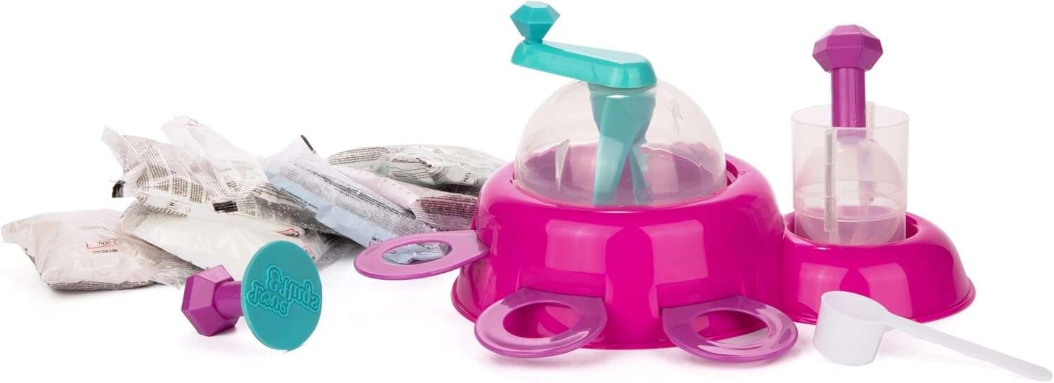 - maišymo stotelė, kamuoliukų formelės, ingredientai šnypščiai mišiniui ir dažymui, įrankiai maišymui ir dekorui, instrukcija