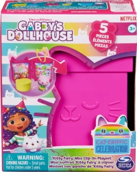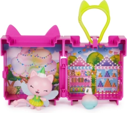 Ši nešiojama minidėžutė, primenanti katės formos dėklą, pradžiugins visus Gabby’s Dollhouse serialo gerbėjus. Viduje rasite spalvingą karnavalinės/pasakų scenos foną, mielą Kitty Fairy figūrėlę ir teminius aksesuarus. Dėl segtuko ir rankenėlės vaikai gali mini žaidimų erdvę pasiimti visur – prisegti prie kuprinės ar nešti rankoje.