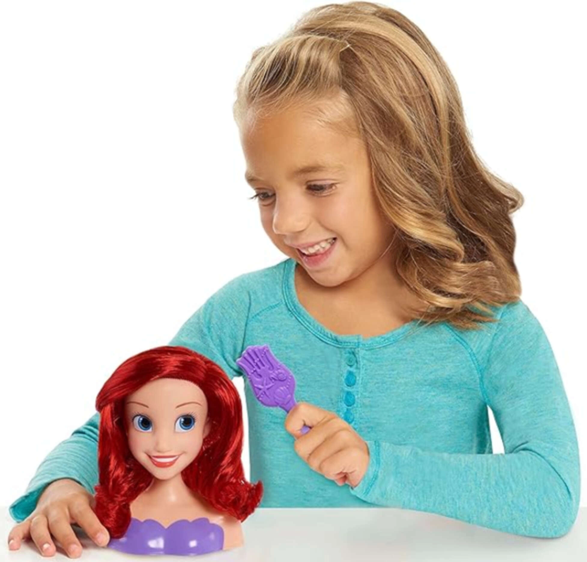 Stilizavimo galva Ariel iš pasakos DISNEY Mažoji undinėlė pradžiugins visas mažąsias kirpėjas. Ji turi ilgus, žvilgančius rusvai raudonus plaukus, kuriuos lengva šukuoti ir formuoti. Rinkinyje yra violetinis šepetys begaliniams šukuosenų variantams kurti. Žaislas lavina kūrybiškumą, smulkiąją motoriką ir estetikos pojūtį.