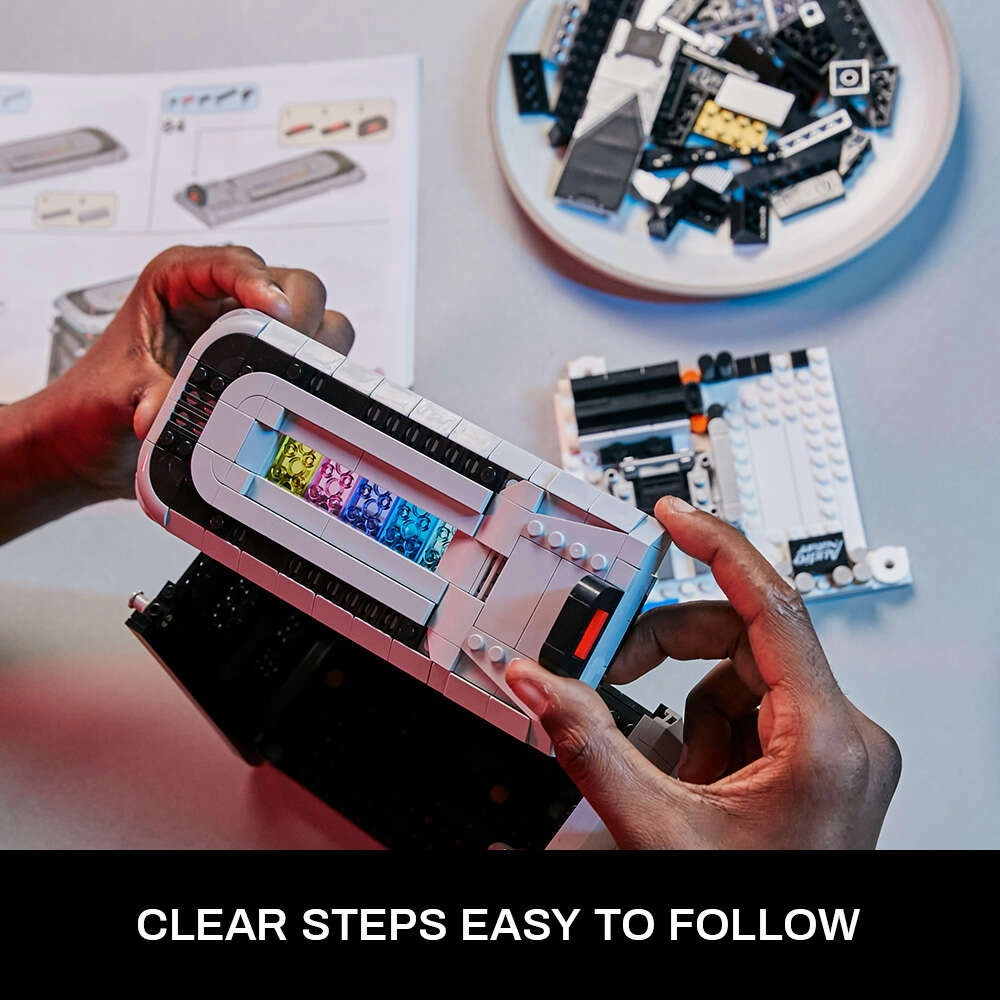 Dėl aiškaus vadovo su spalvotomis iliustracijomis surinkimas yra sklandus ir smagus. Baigtas modelis išsiskiria kaip stilinga darbo kampelio ar žaidimų erdvės dekoracija. Patvarios ABS detalės tvirtai laikosi kartu ir sumažina tarpus, suteikdamos švarią, elegantišką išvaizdą.