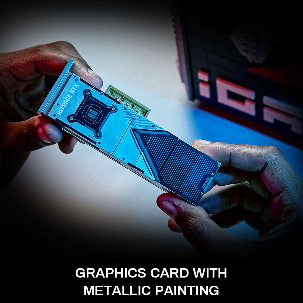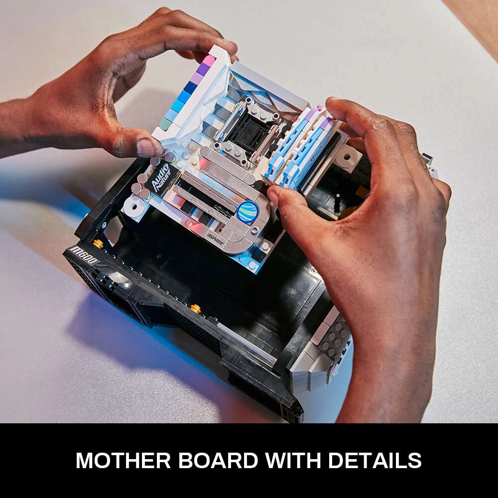 Atraskite originalų konstruktorių, kuris ištikimai atkuria modernų žaidimų stalinį kompiuterį. Kiekvienas modulis – nuo vaizdo plokštės per maitinimo šaltinį ir SSD laikiklį iki pagrindinės plokštės ir DDR atminties – surenkamas atskirai, tad pajusite realistišką kompiuterio „upgrade“ pojūtį. Preciziškas tamponinis spaudas ant detalių užtikrina ilgalaikę puikią išvaizdą be lipnių etikečių.