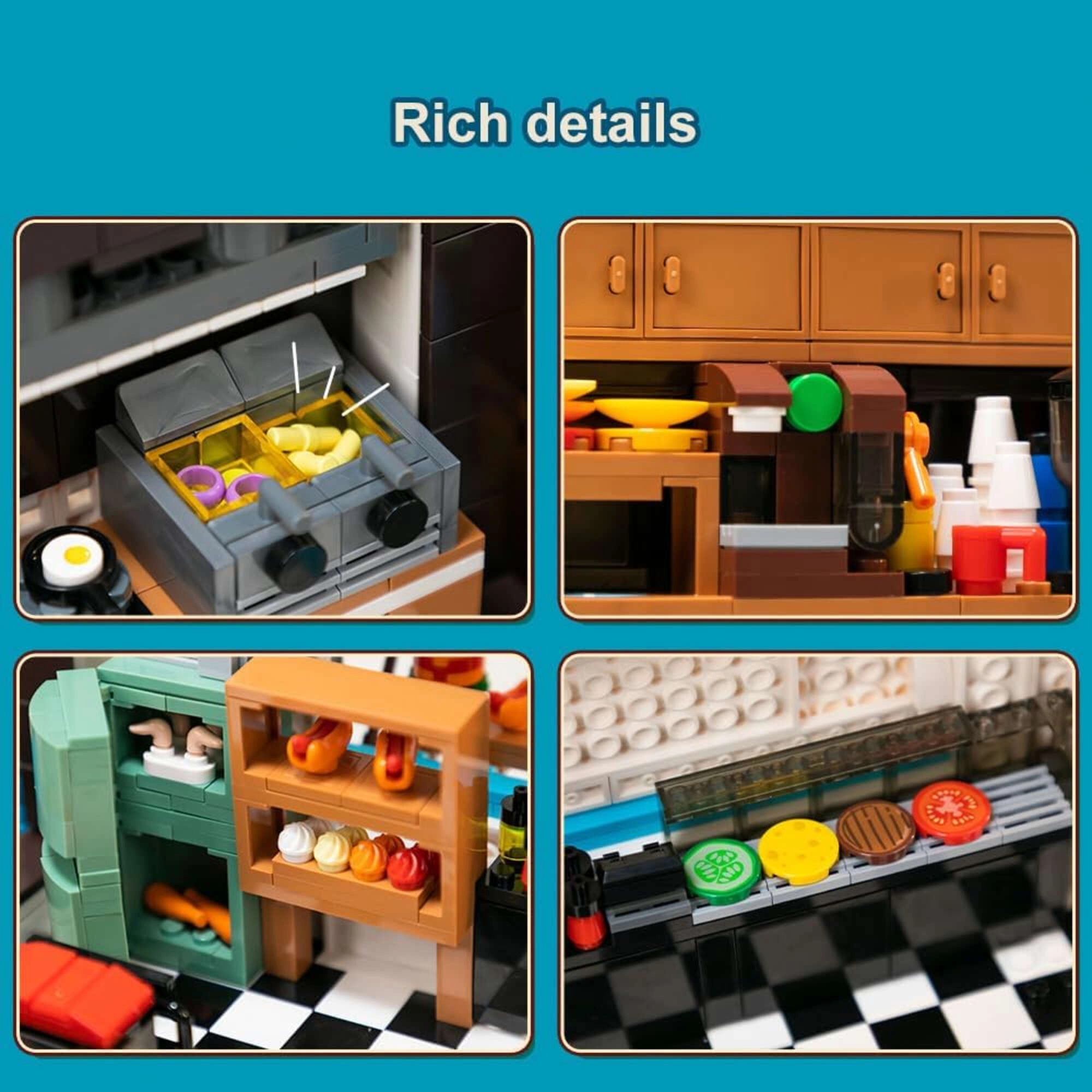 Atraskite gatvių, pilnų kvapų ir šviesų, žavesį su kruopščiai sukurtu retro maisto sunkvežimio modeliu. Stogas lengvai pakeliamas ir atveria autentišką virtuvę su kaitlente, gruzdintuve, orkaite ir įrankiais. Dėl spausdintų detalių išvaizda išlieka švari ir ilgalaikė.
