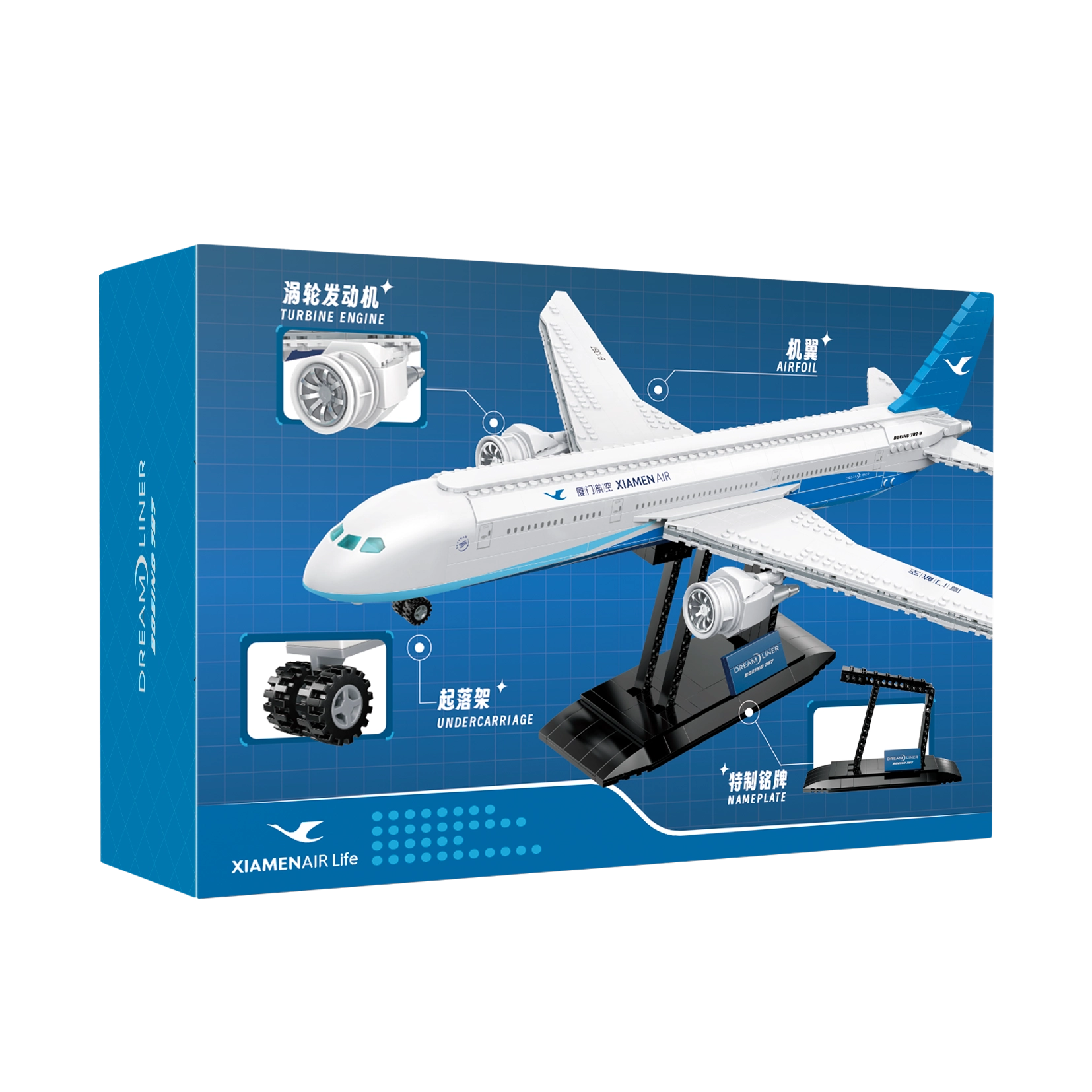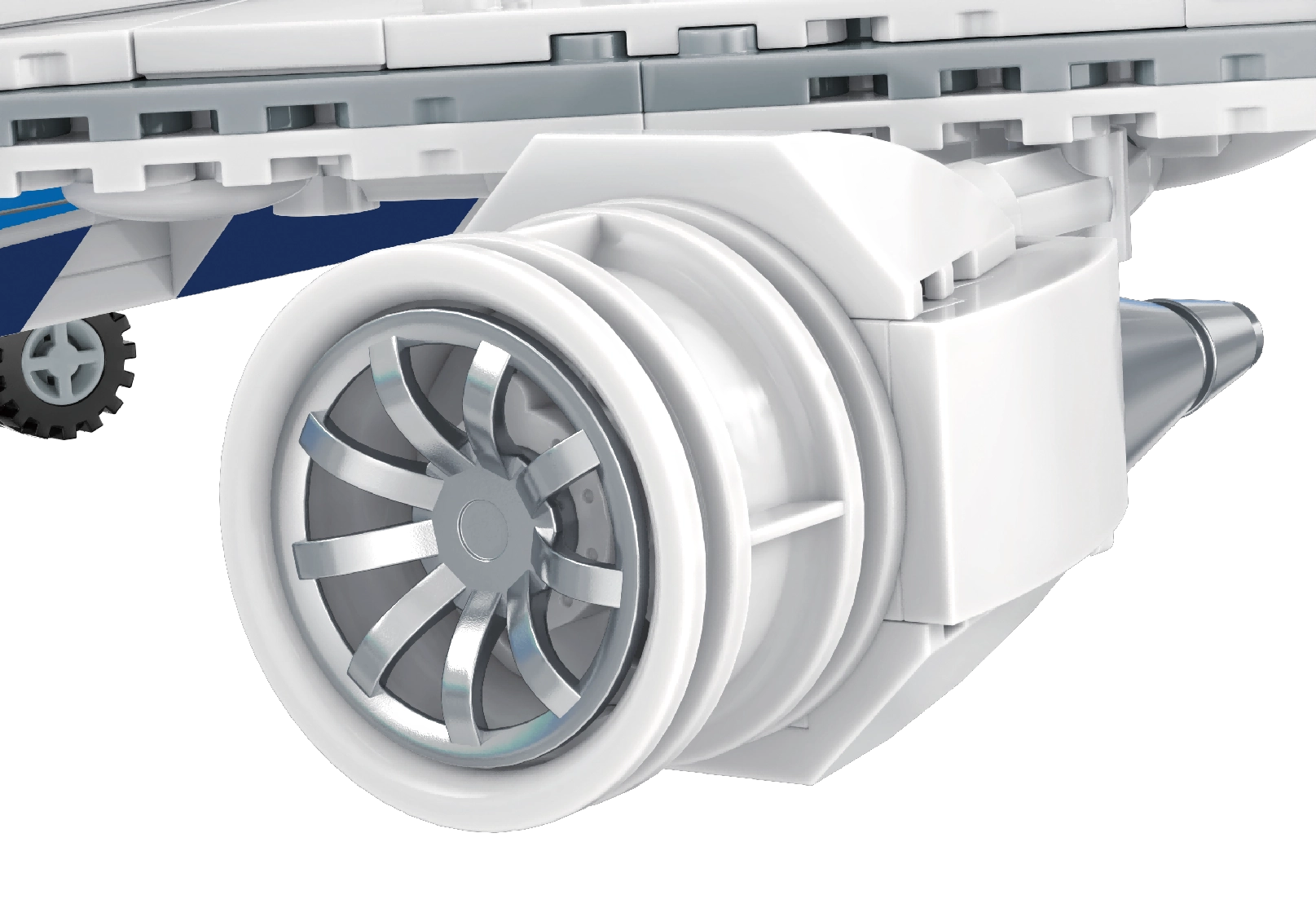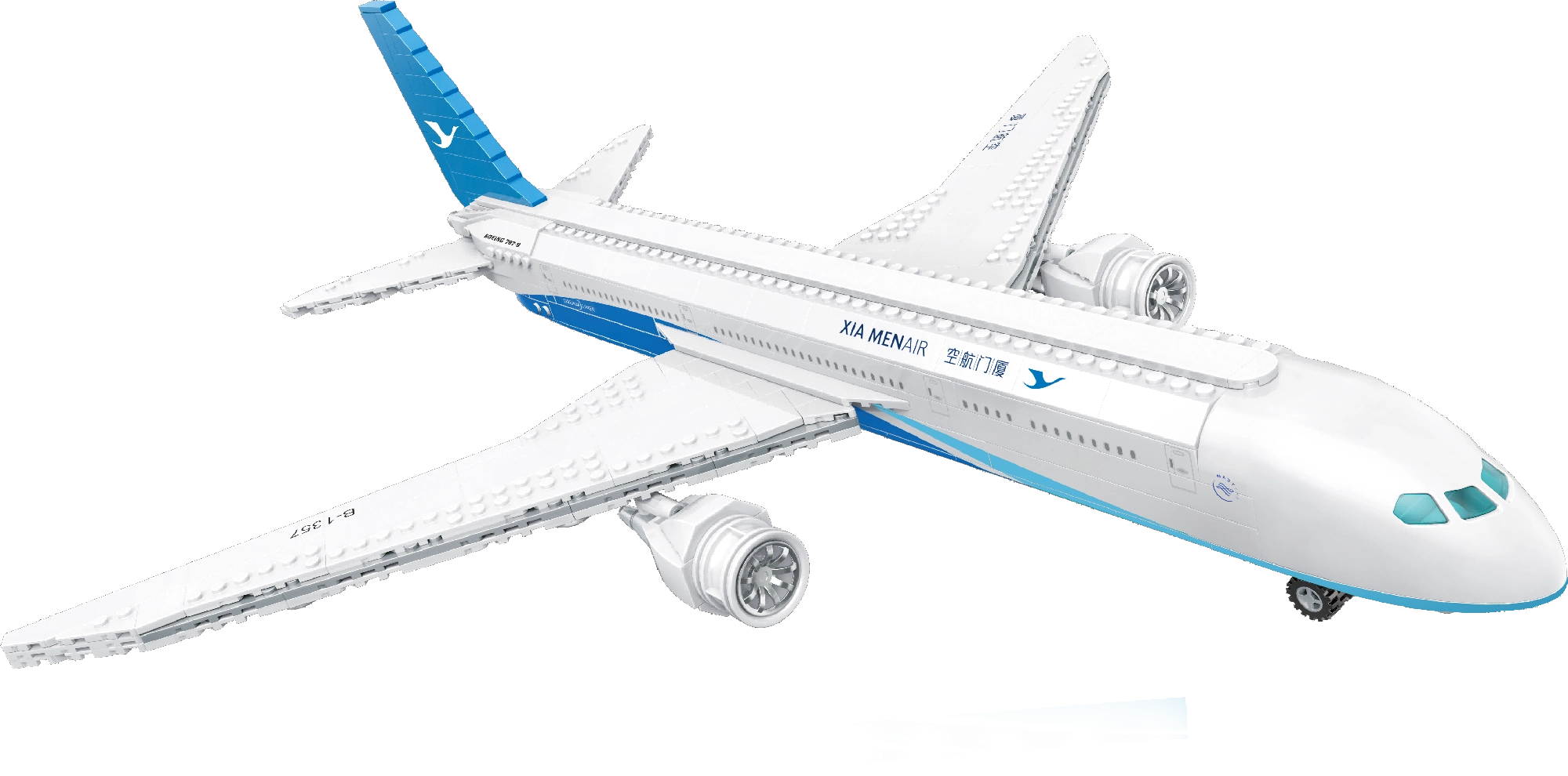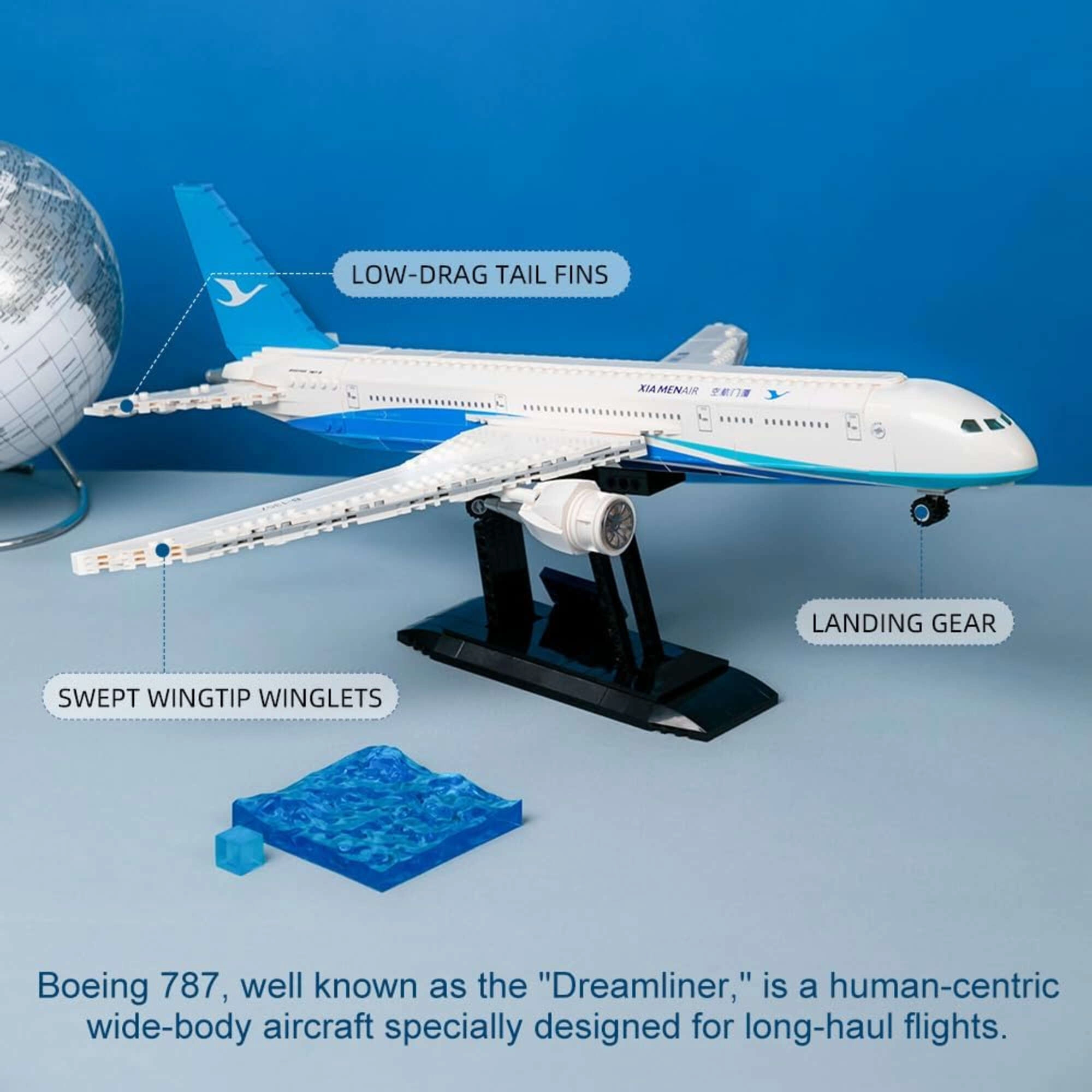 Šis realistiškas konstruktorius pristato šiuolaikinės aviacijos ikoną – BOEING 787 Dreamliner – įspūdingą 55 cm ilgio eksponatą. Preciziškai apdirbti elementai, įskaitant turboventiliatorinius variklius, aerodinaminius paviršius ir detalią nosies dalį, sustiprina autentišką išvaizdą. Spausdintos detalės tiesiai ant dalių užtikrina ilgalaikę, švarią ir elegantišką išvaizdą be atsilupančių lipdukų.