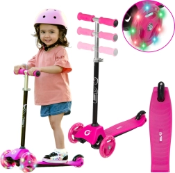 Lengvas ir stabilus vaikiškas paspirtukas EVO Mini Cruiser su trimis ratais, kad būtų lengviau mokytis pusiausvyros. Jis siūlo šviečiančius LED ratukus, posūkį svyruojant (balansinis vairavimas), aukščio reguliuojamą vairą ir galinį kojinį stabdį. Rožinė spalva patiks mažiesiems, o tylus važiavimas ir plati platforma užtikrins patogumą ir saugumą.