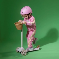 Dėka vairų aukščio reguliavimo (apie 62–72 cm) lengvai pritaikysite paspirtuką vaiko ūgiui. Kojinis stabdis, esantis ant galinio sparno, yra intuityvus ir saugus. Ergonomiškos TPE rankenos neslysta ir patogiai telpa į vaiko delnus.