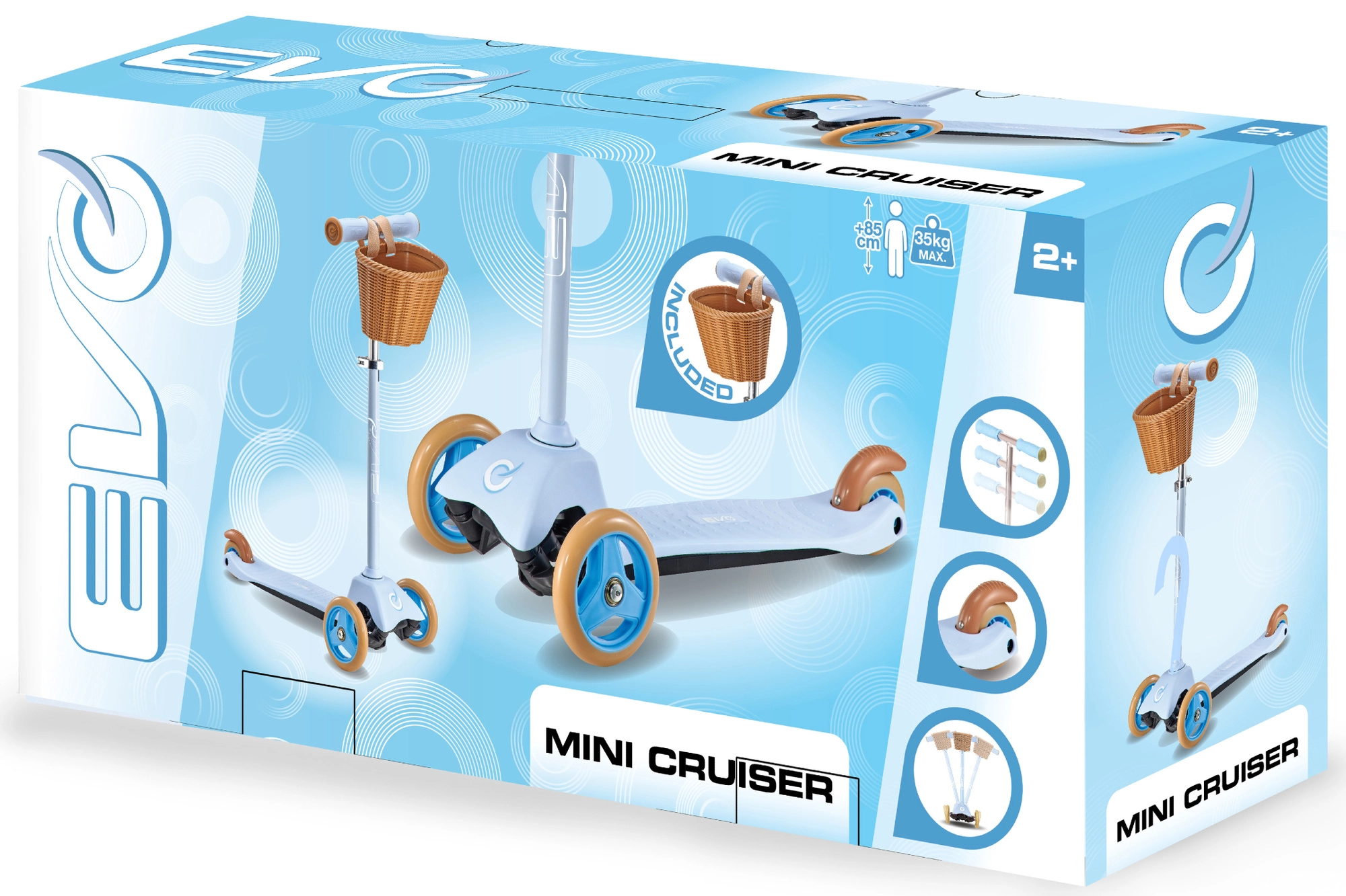 EVO Mini Cruiser – balansinis triratukas, sukurtas pirmajam važiavimui, pusiausvyros ir vairavimo pasitikėjimo lavinimui. Žemas ir platus pakojis su neslystančiu paviršiumi, du didesni priekiniai ratai ir ABEC-5 guoliai suteikia sklandų ir tylų poilsinį važiavimą lygiu paviršiumi. Nuimamas krepšelis leidžia vaikams pasiimti į išvyką smulkmenas ar mėgstamą žaislą.