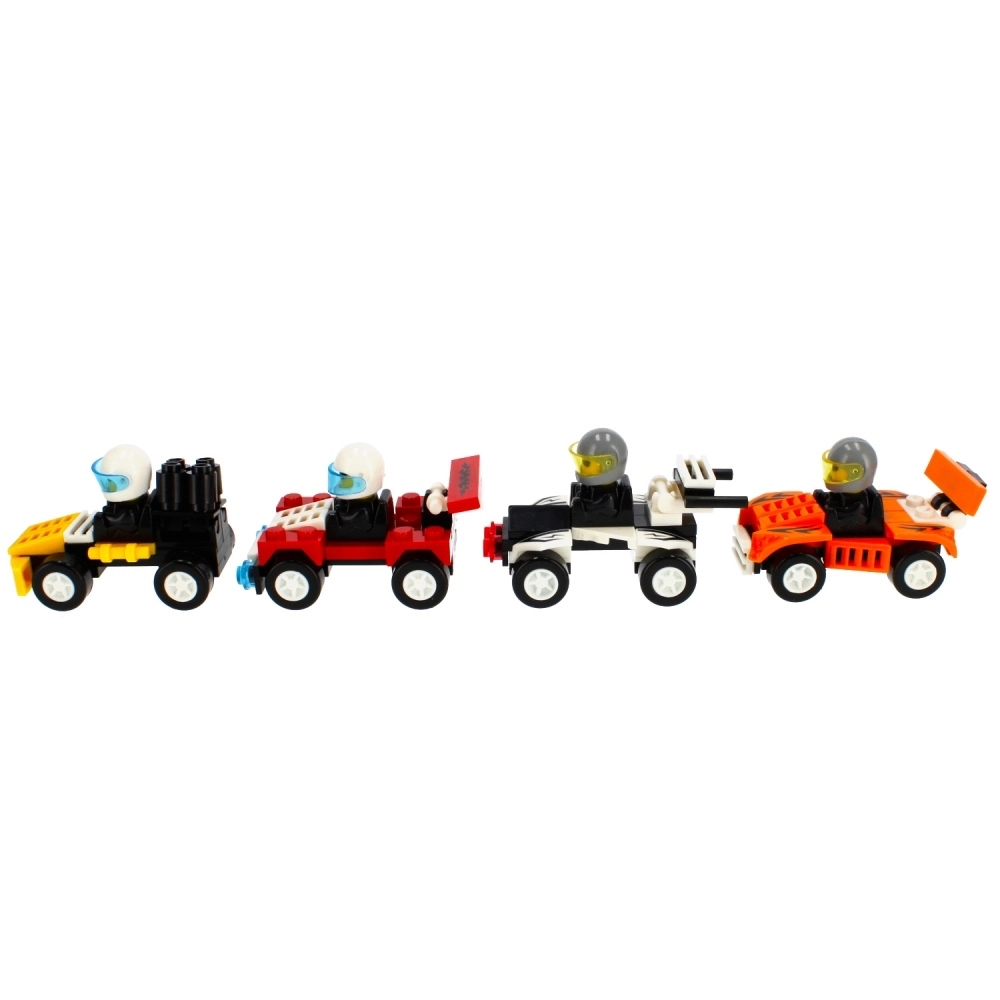 Galima rinktis iš 4 patrauklių dizainų (skirtingos spalvos ir detalės), kurie puikiai atrodo tiek ant lentynos, tiek namų lenktynių trasoje. Automobiliukai suderinami su įprastais panašaus tipo konstruktoriais, tad lengva išplėsti parką ar susikurti savo komandą.
