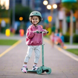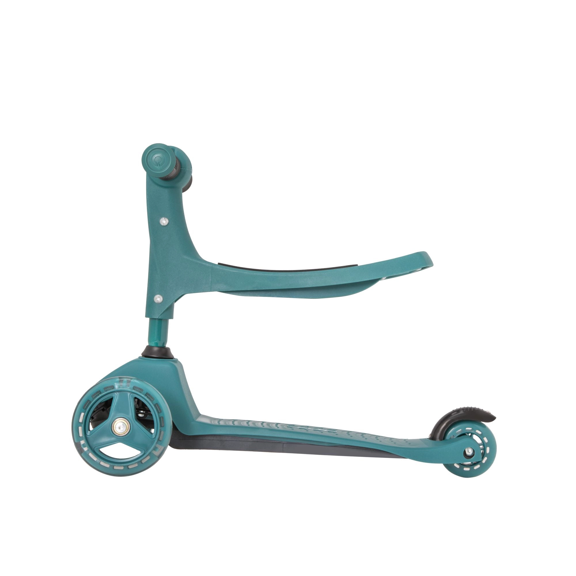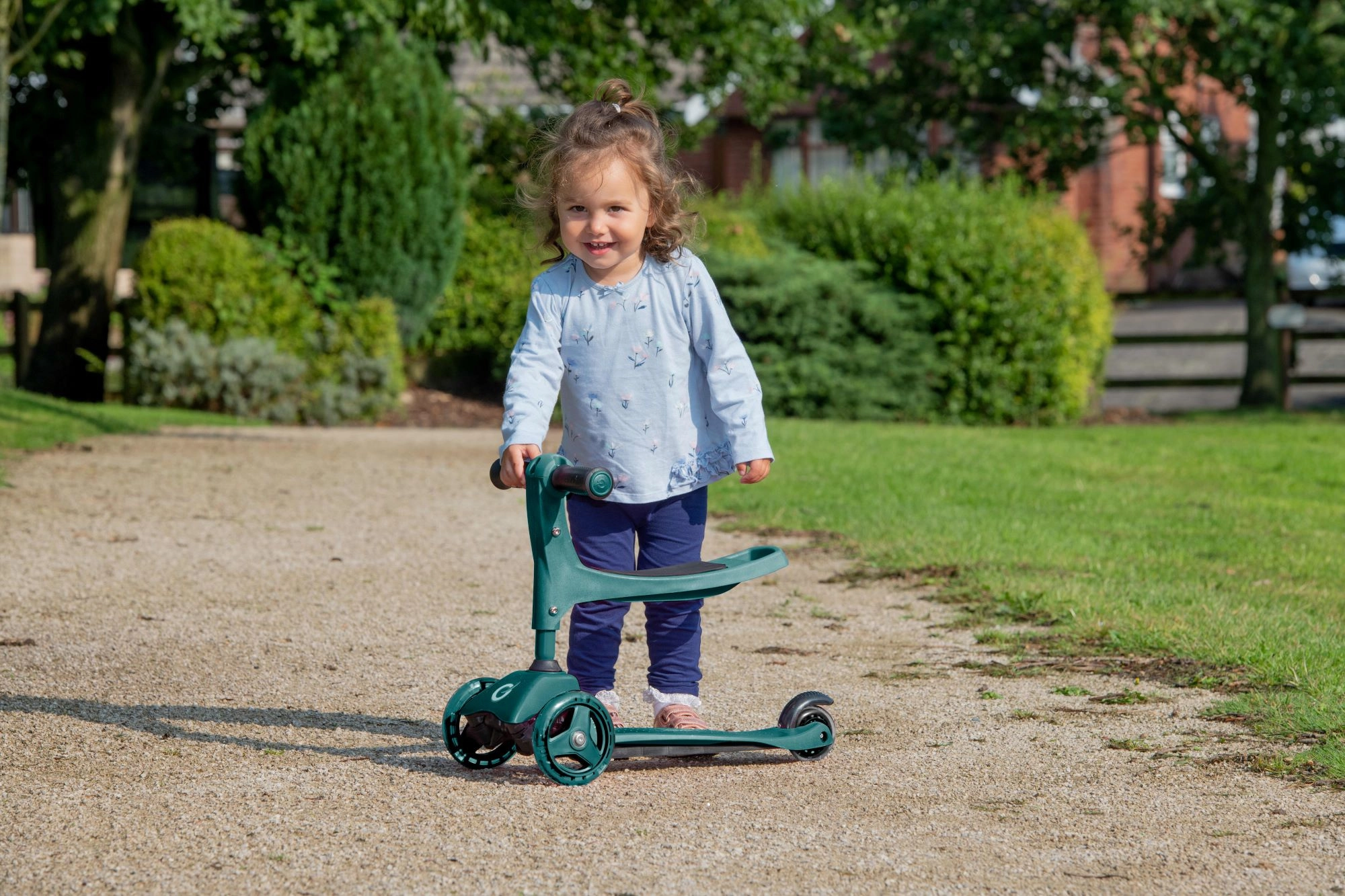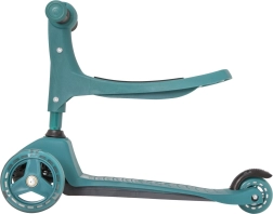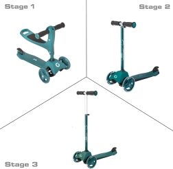 Šis išmanus triratis paspirtukas 2 viename akimirksniu virsta iš važiuoklės su sėdyne į klasikinį paspirtuką. Dėl reguliuojamų vairų (apie 40 cm važiuoklės režime ir 62–72 cm paspirtuko režime) jis „auga“ kartu su vaiku ir suteikia užtikrintumo per pirmuosius važiavimus bei vėliau, kai atsistūmimai tampa greitesni.