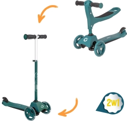 2 viename: važiuoklė su sėdyne ir paspirtukas