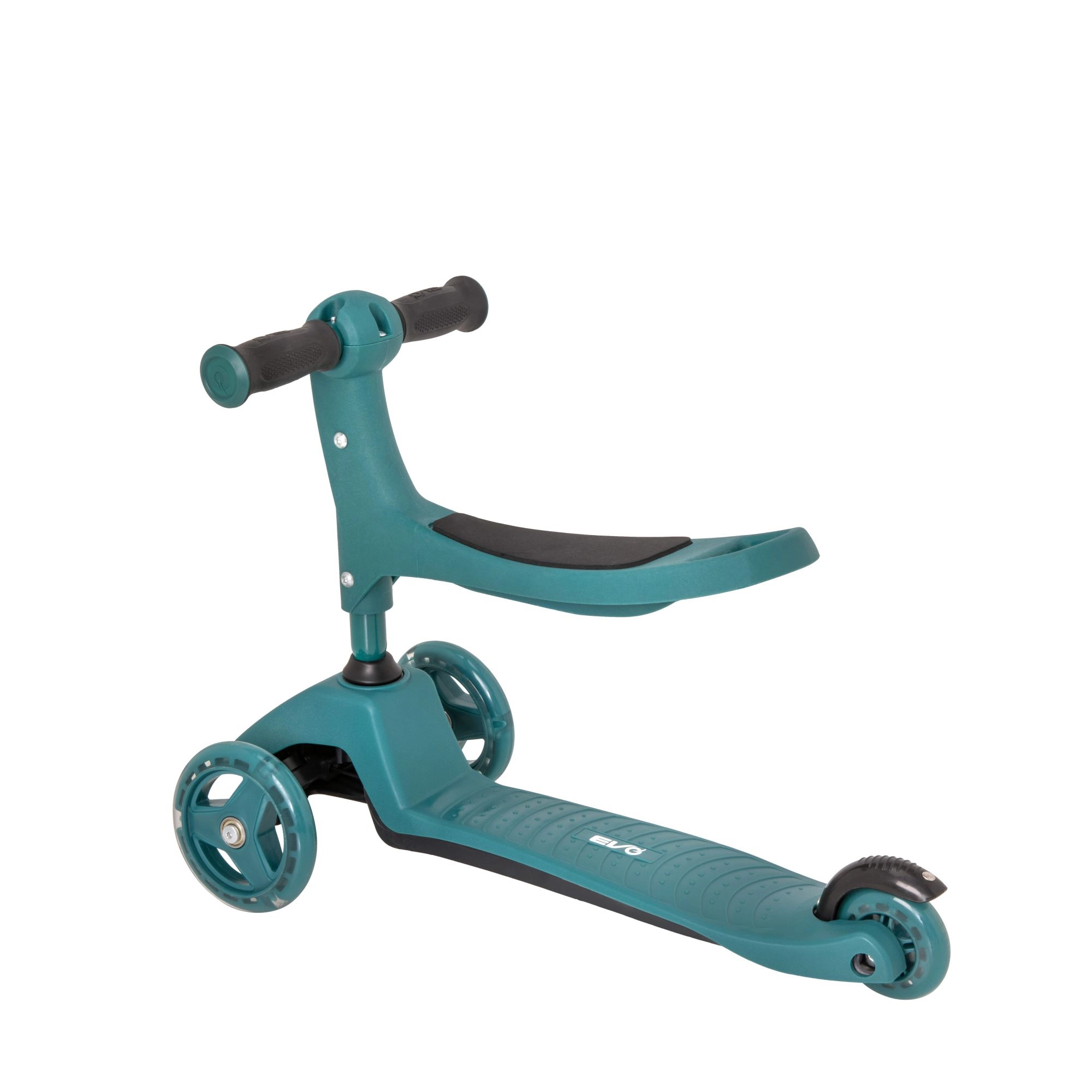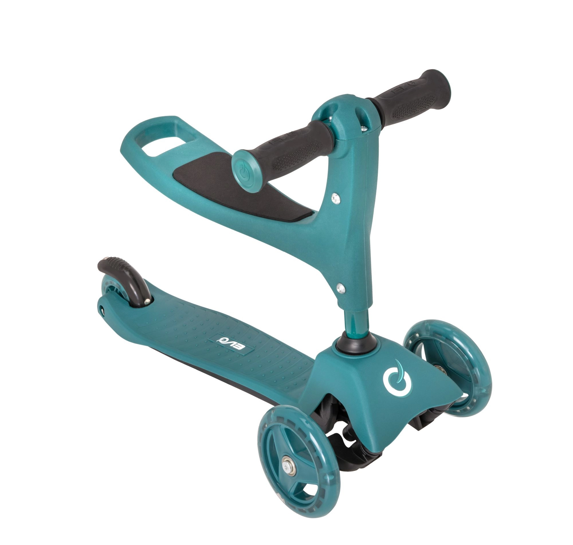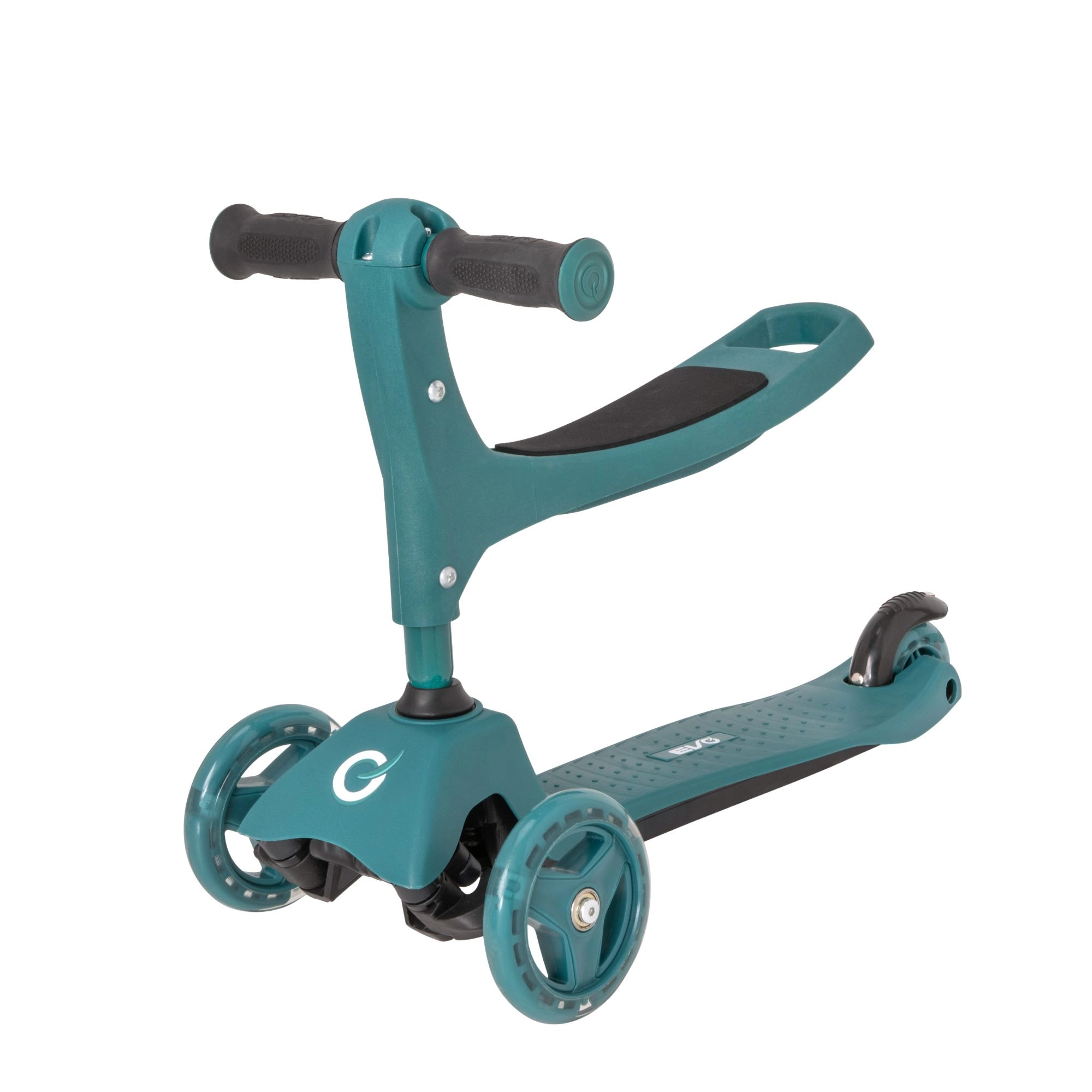 Suteikite vaikams stabilią ir linksmą kelionę su EVO 2 viename paspirtuku – jis sujungia važiuoklę su sėdyne ir paspirtuką viename. Dėl trijų ratų, plataus pakojo ir reguliuojamo vairo aukščio jis lavina pusiausvyrą ir koordinaciją jau nuo 1 metų. Dvigubi priekiniai ratai, tylūs ABEC-5 guoliai ir galinis sparnas su kojiniu stabdžiu užtikrina saugią ir tolygią kelionę.
